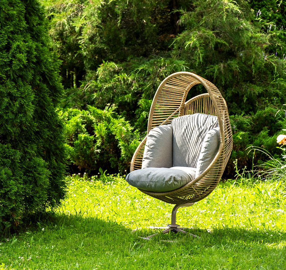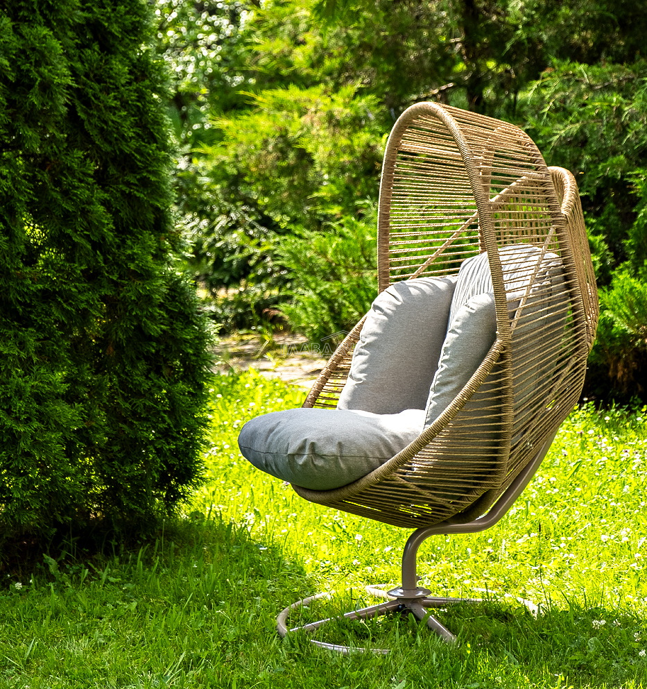 Подвесное плетеное кресло-кокон «Барселона» для организации зоны отдыха в саду, на террасе или летней площадке ресторана.