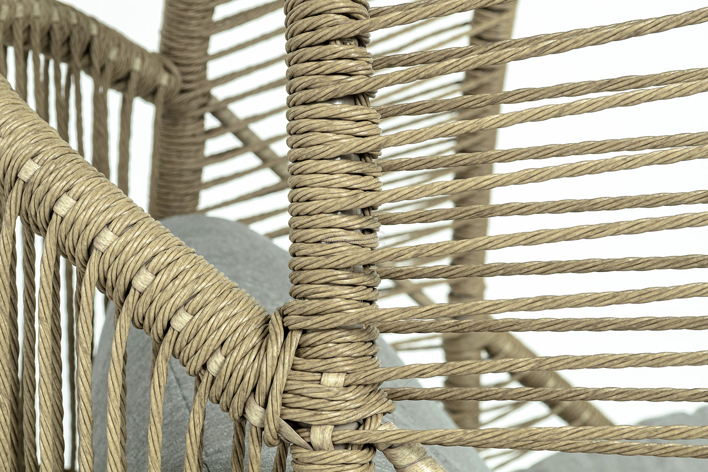Каркас изготовлен из стали, окрашенного порошковой износостойкой краской бежевого цвета. Оплетка – плоский искусственный ротанг соломенного оттенка. Материал устойчив к перепадам погоды и подходит для использования на открытых пространствах.
