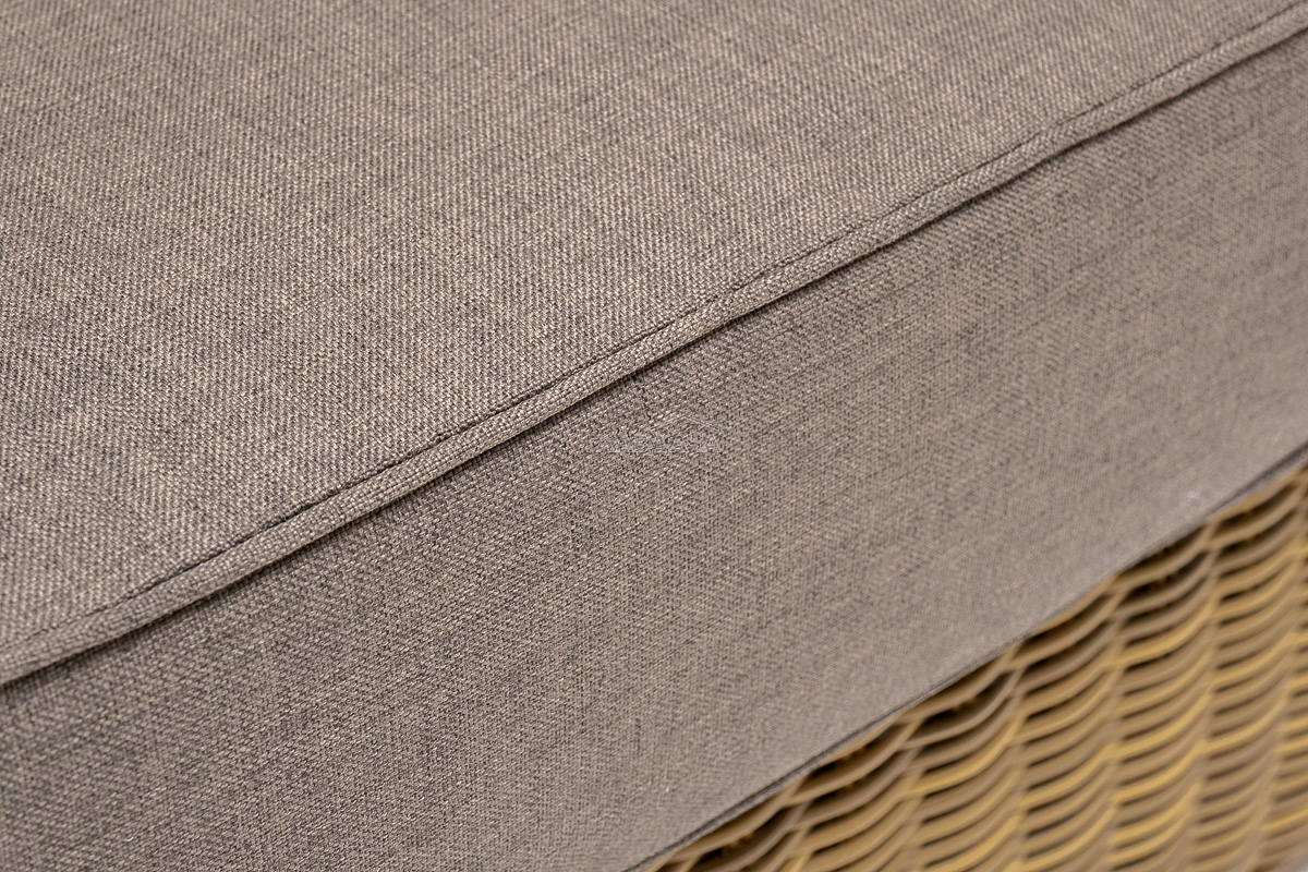 В комплектацию входят мягкие подушки для комфортного расположения. Чехлы съёмные серого цвета из высококлассного полиэстера с плотностью 300гр/м2. Габариты модели составляют 1000×900×775 мм, толщина подушки: 150 мм, вес: 23 кг.