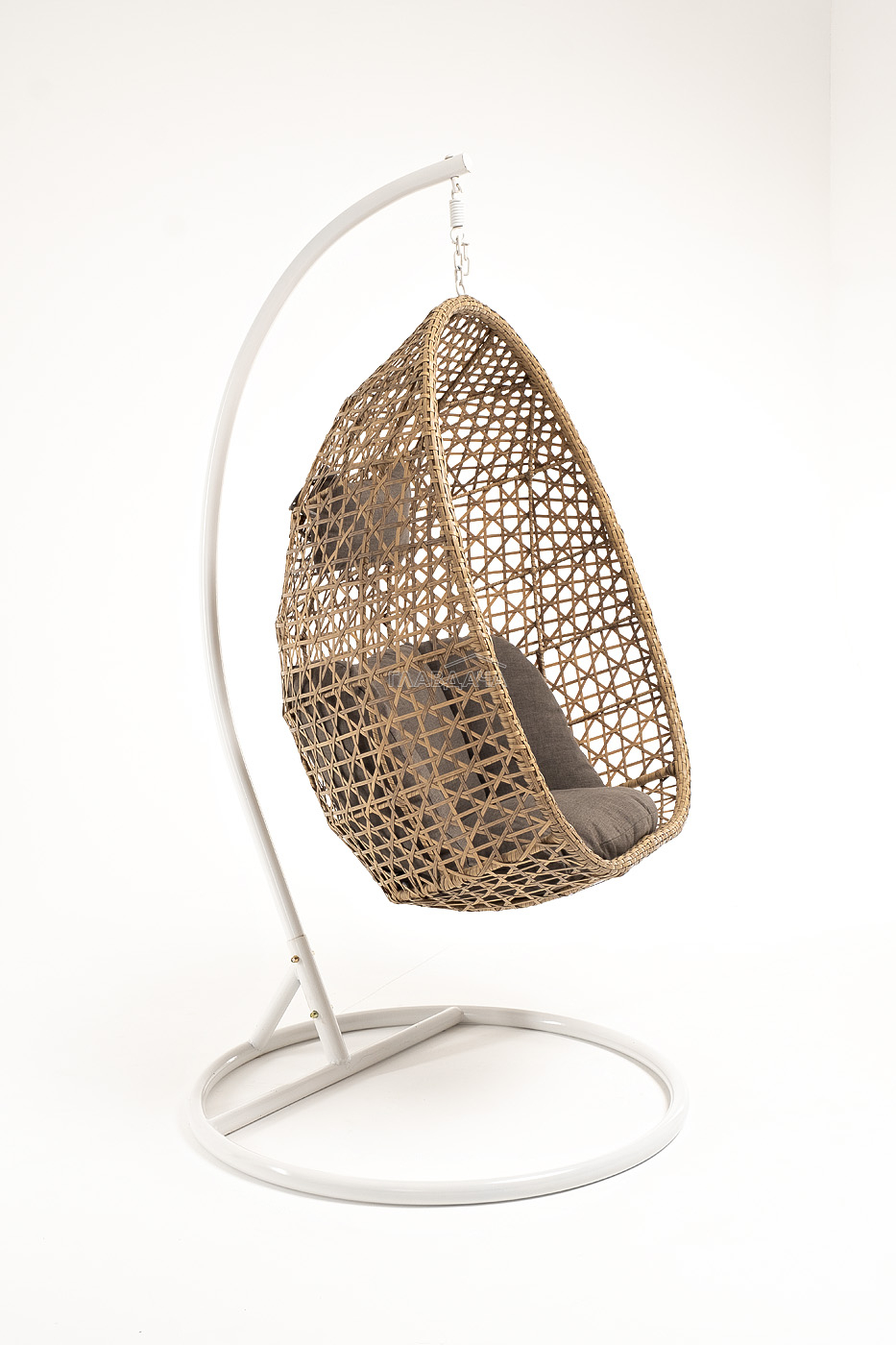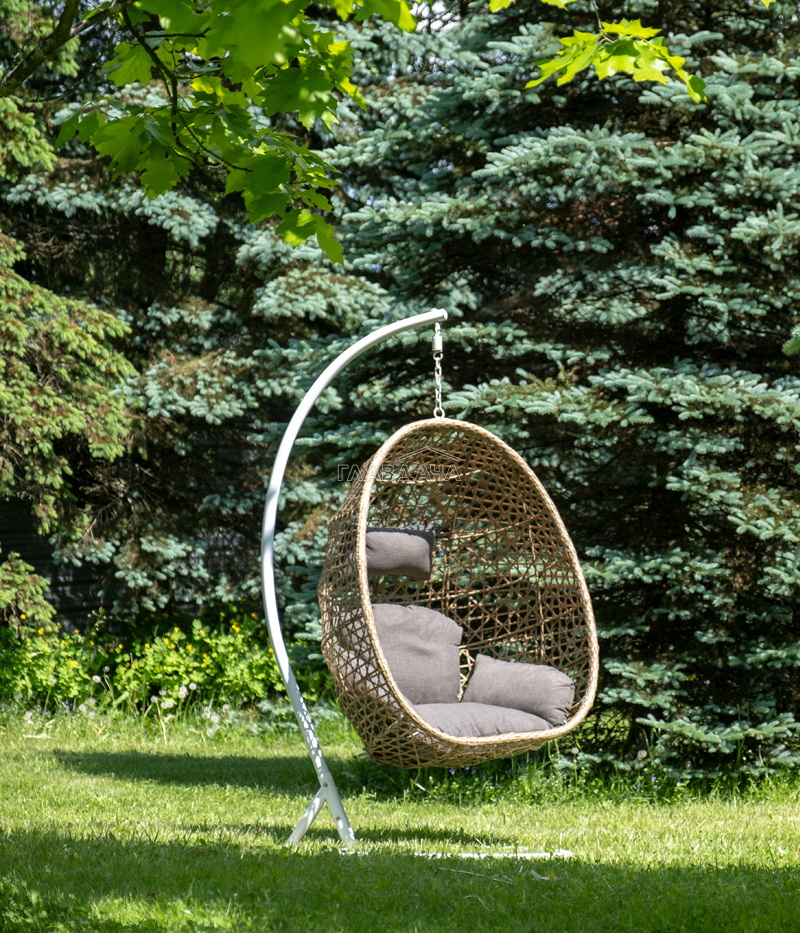 Уютное садовое кресло-кокон «Флоренция» для организации лаунж-зоны. Основание изготовлено из стали окрашенного порошковой износостойкой краской белого оттенка, вручную оплетенного плоским искусственным ротангом соломенного цвета. Этот материал не боится перепадов температуры, прямых солнечных лучей, дождя и ветра.