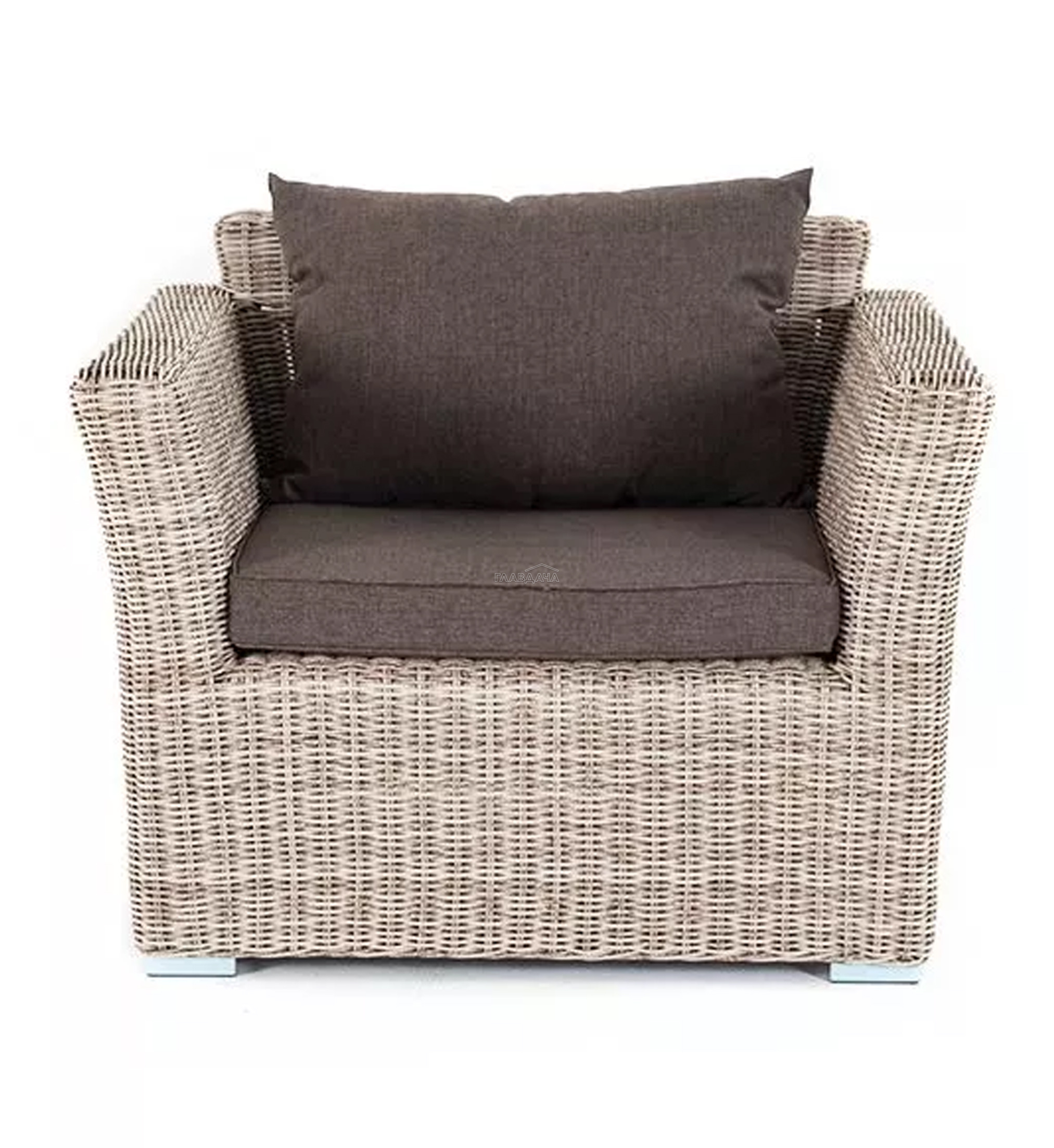 Кресло из круглого искусственного ротанга «Капучино» бежевого цвета, отлично вписывается в садовый антураж. В основе - прочный алюминиевый каркас, который отвечает за надежность конструкции.
