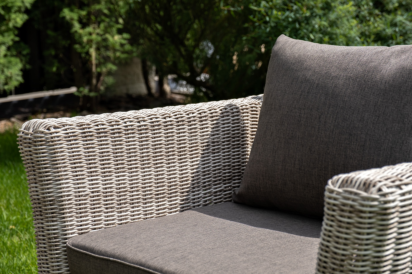 Размеры кресла - 1040×865×815 мм, в комплектацию входят две подушки, произведенные из полиэстера с влагоотталкивающей пропиткой.