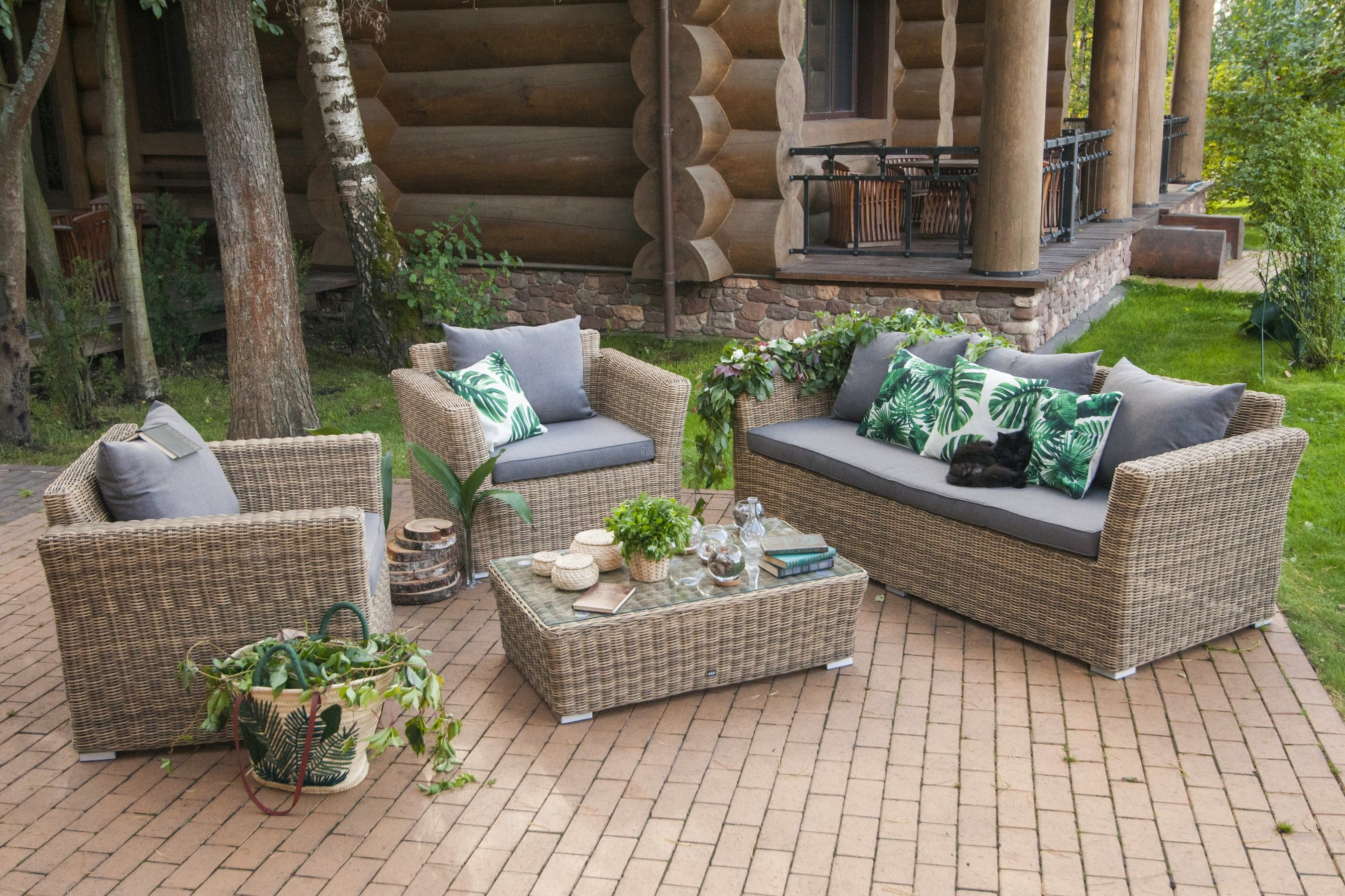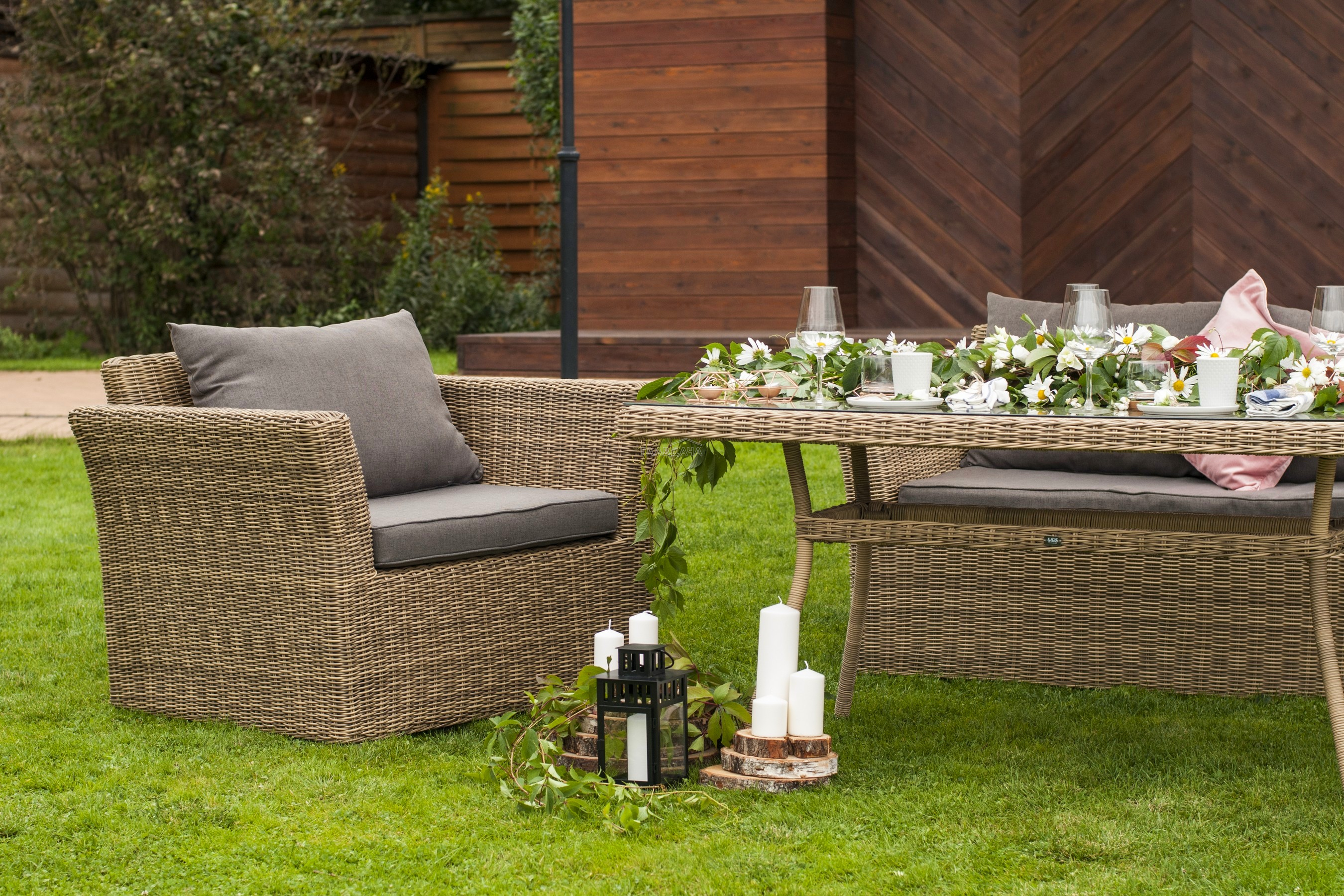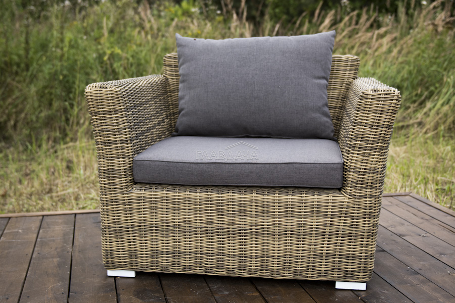 Две подушки серого цвета представлены в комплекте с садовым креслом. Изделия пошиты из полиэстера плотностью 300гр/м2. В обязательном порядке материал обрабатывается влагоотталкивающей пропиткой для усиления своих защитных свойств.