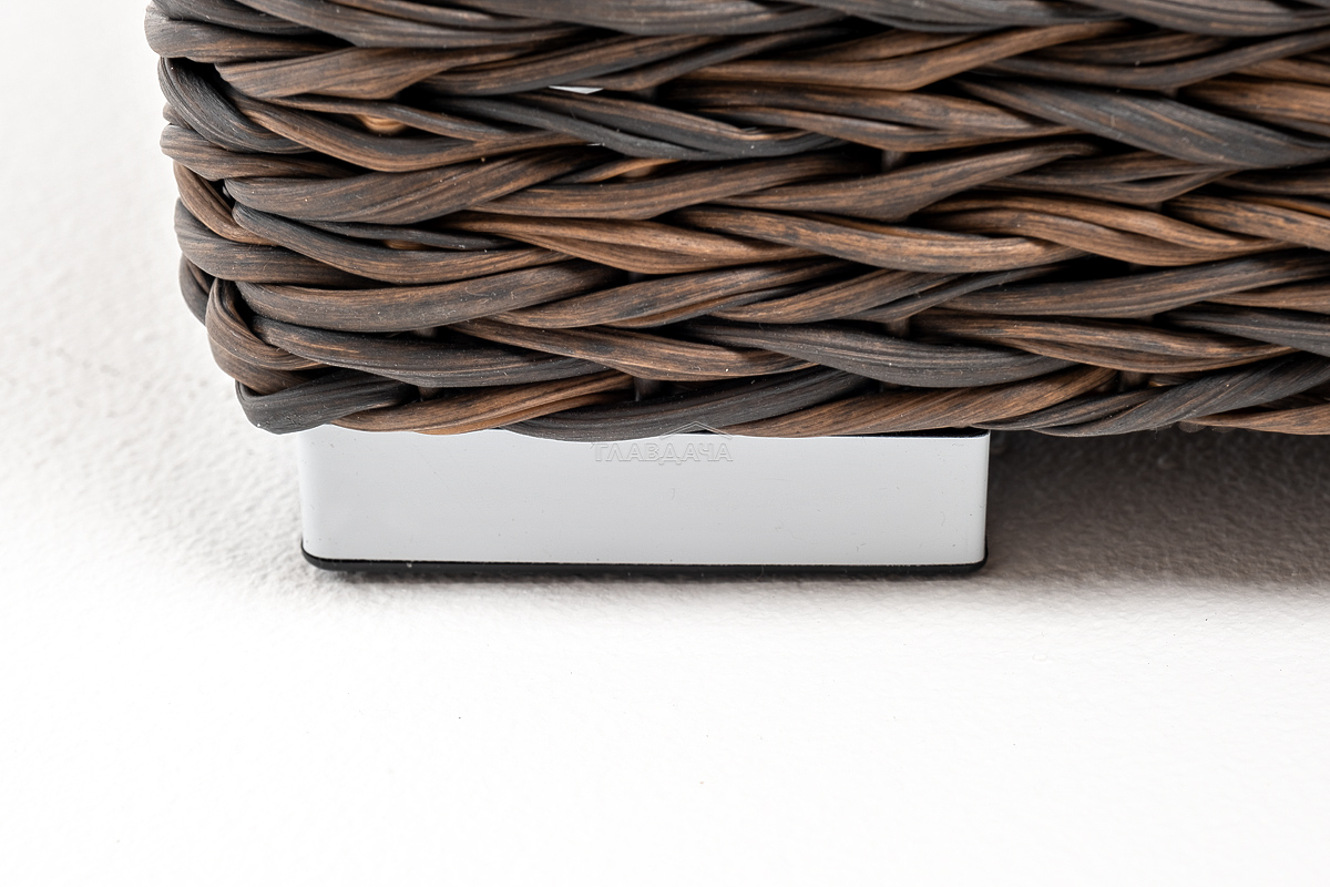 Кресло из искусственного ротанга «Капучино» коричневого цвета, прекрасно подходит для обустройства веранды, а относительно небольшой вес, который составляет 21,5 кг, увеличивает мобильность данной модели. Плетение используется вида «гиацинт».