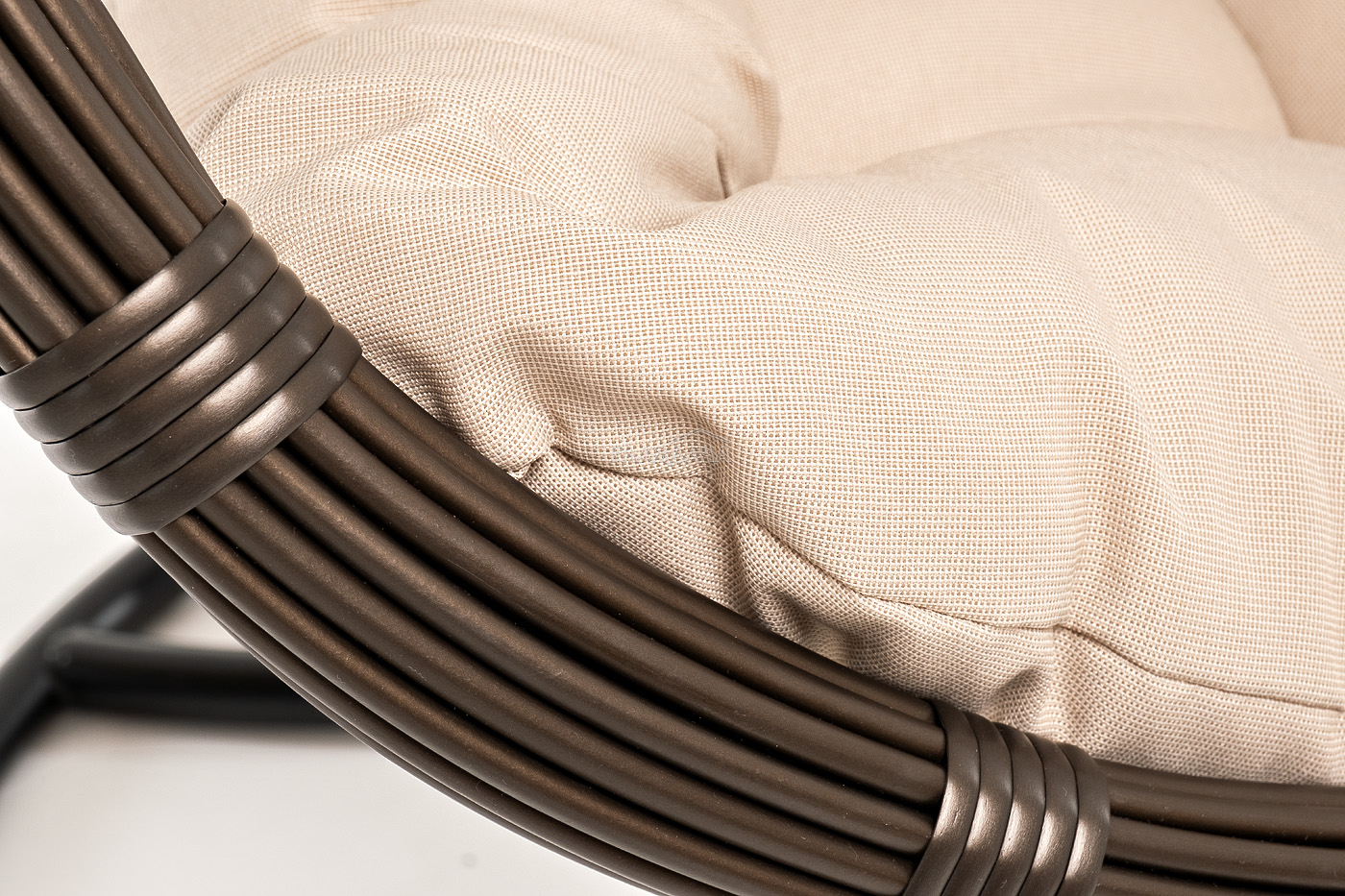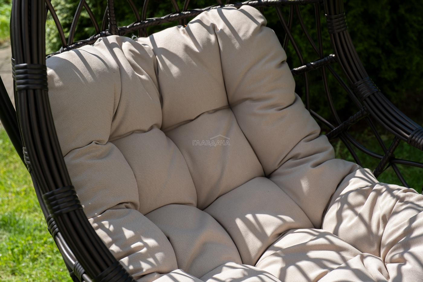 Для удобства сидения на кресле предусмотрена удлиненная подушка бежевого цвета из полиэстера с влагоотталкивающей пропиткой. Чехол – съемный, допускается стирать в стиральной машине с использованием порошка.