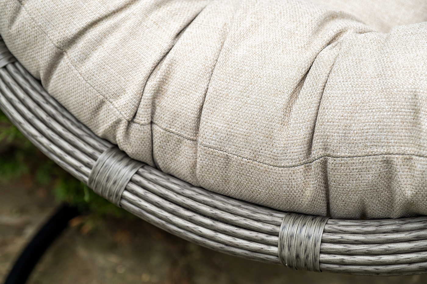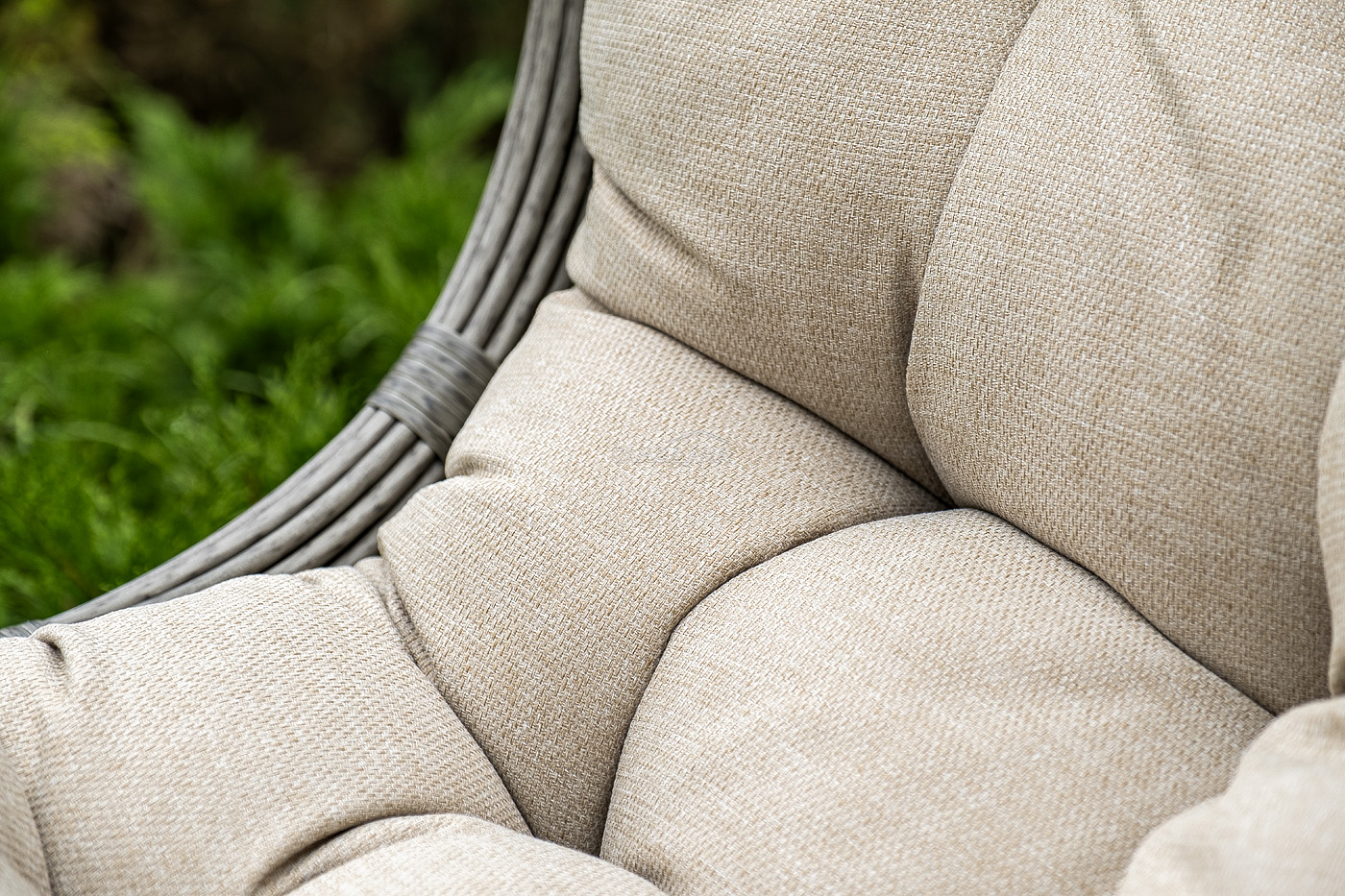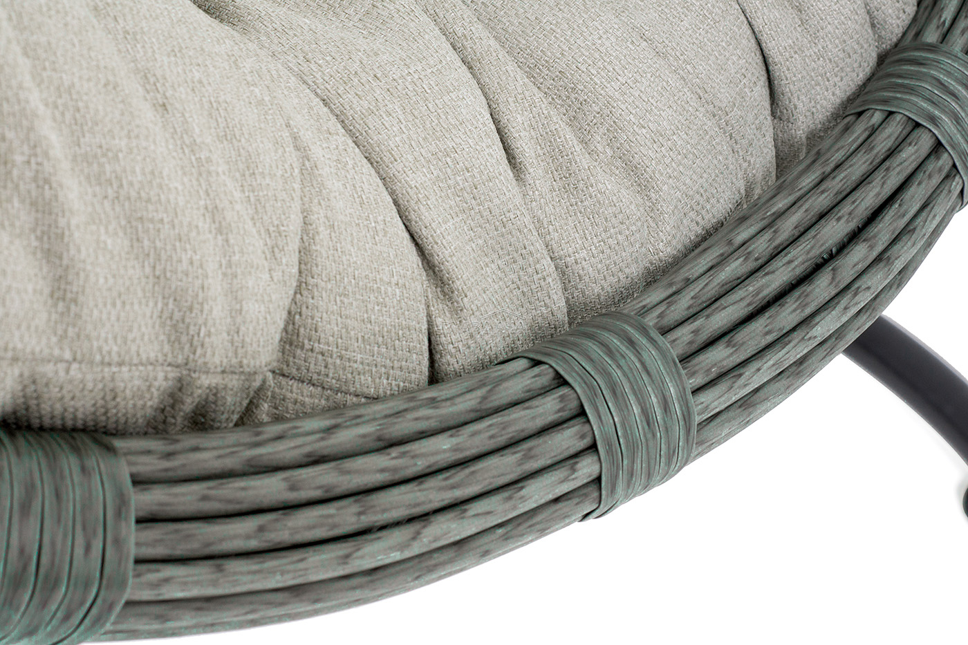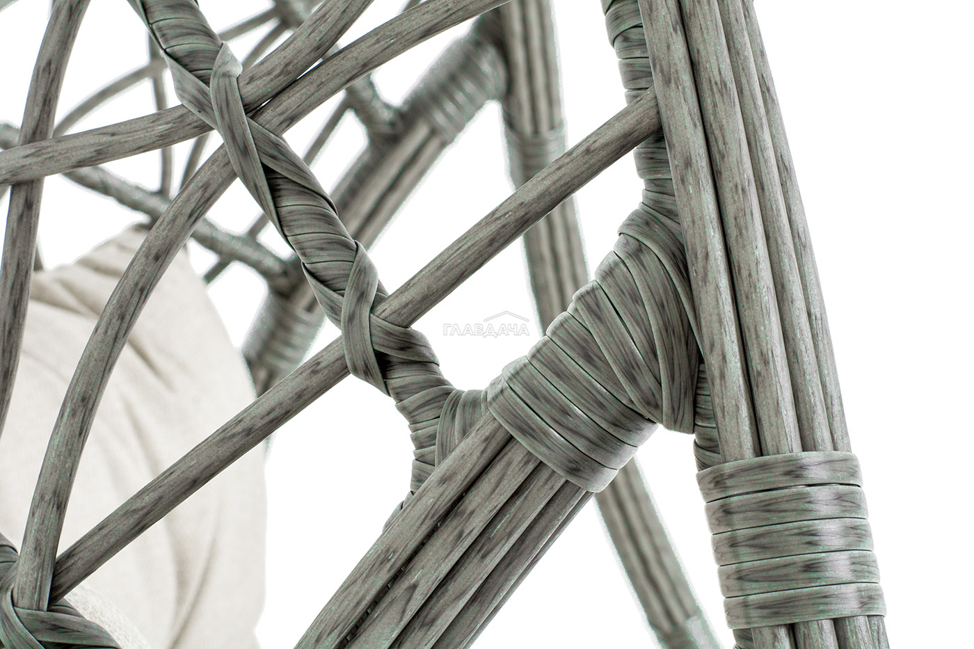 Уютное садовое кресло-кокон «Венеция» для организации лаунж-зоны. Основание изготовлено из стали окрашенного порошковой износостойкой краской черного оттенка, вручную оплетенного круглый искусственным ротангом серого цвета. Этот материал не боится перепадов температуры, прямых солнечных лучей, дождя и ветра.