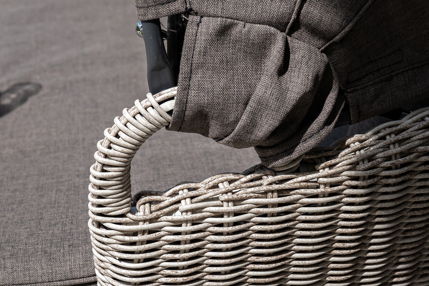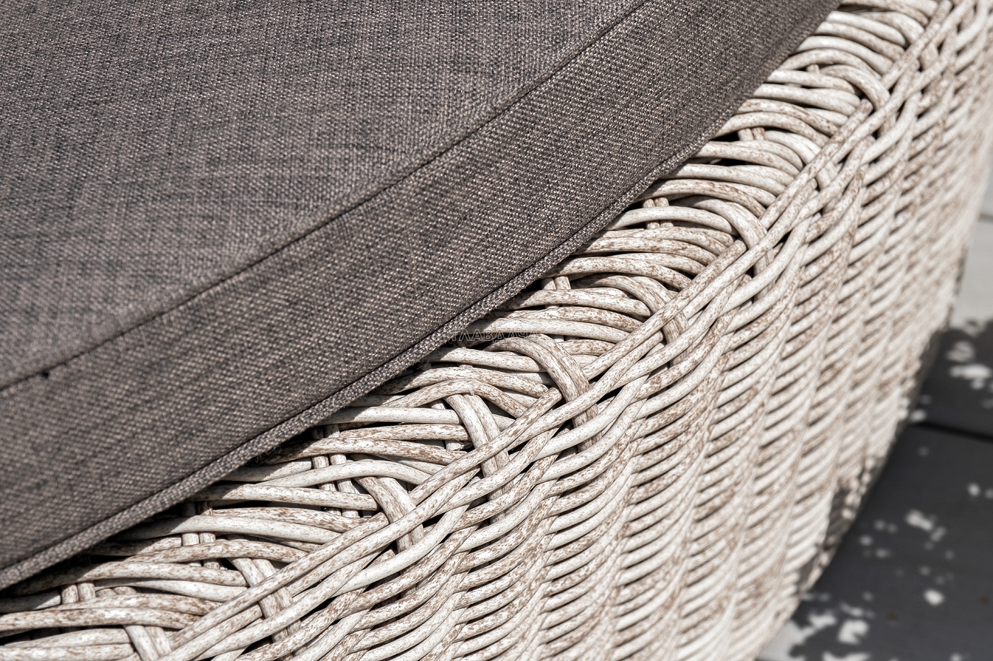 Данная модель имеет в основании прочный алюминиевый каркас, оплетенный вручную круглым ротангом бежевого цвета и оснащена регулируемым козырьком, который ограничивает попадание солнечных лучей. Выполнен из водостойкой полиэфирной ткани.