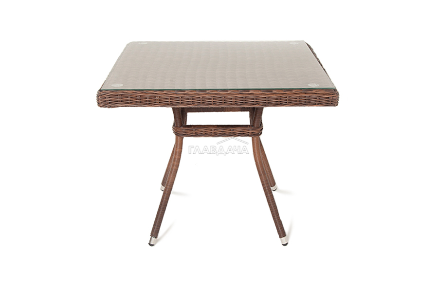 Плетеный квадратный столик «Айриш» изготовлен из легкого, но устойчивого к деформациям алюминия, вручную оплетенного искусственным ротангом насыщенного шоколадного оттенка.
