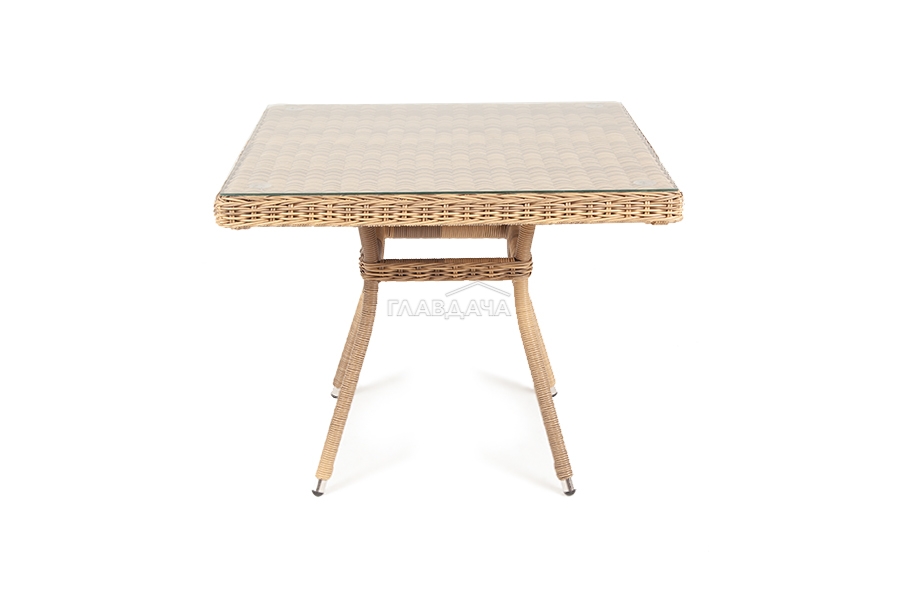 Размер садового стола: 900×900×750 мм. Его можно дополнить креслами «Латте» и создать обеденную группу для компании из 4-х человек.