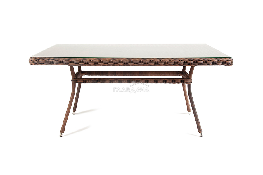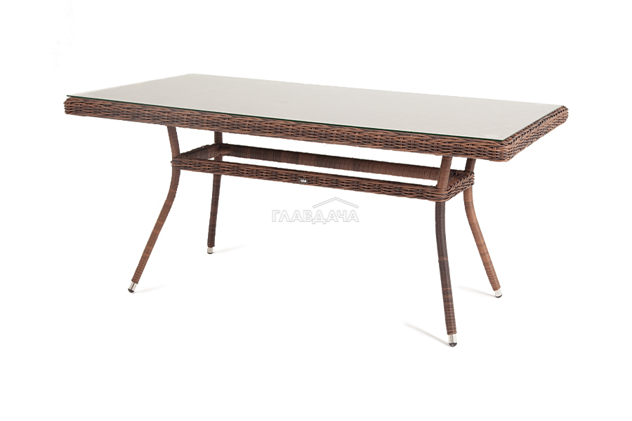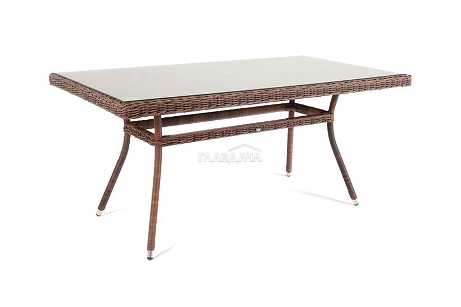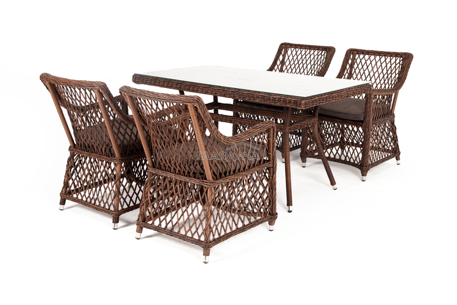Каркас произведен из прочного алюминия, оплетка которого, выполнена вручную ротангом коричневого цвета. Поверхность защищает стеклянная столешница, толщиной 5 мм.