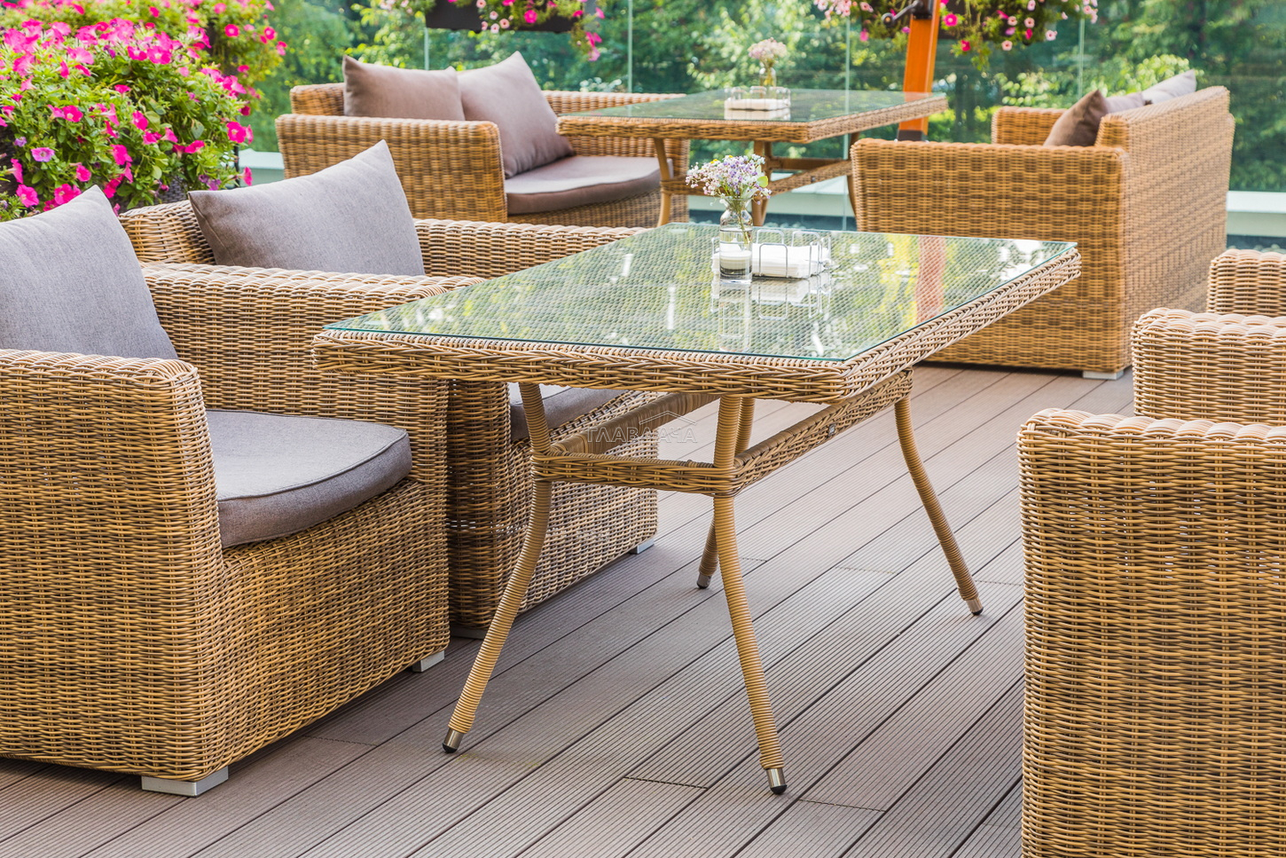 Плетеный стол «Латте» предназначен для организации обеденной зоны в саду, на балконе, летней террасе ресторана или отеля.