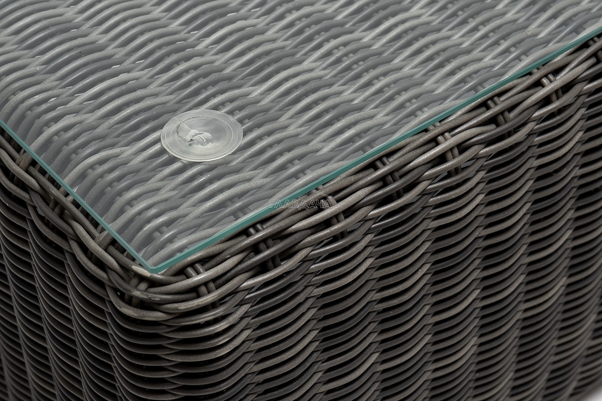 Столешница из закаленного стекла толщиной 5 мм. Благодаря износостойким материалам, стол пригоден для использования на улице при любой погоде и не требует специальных условий хранения.