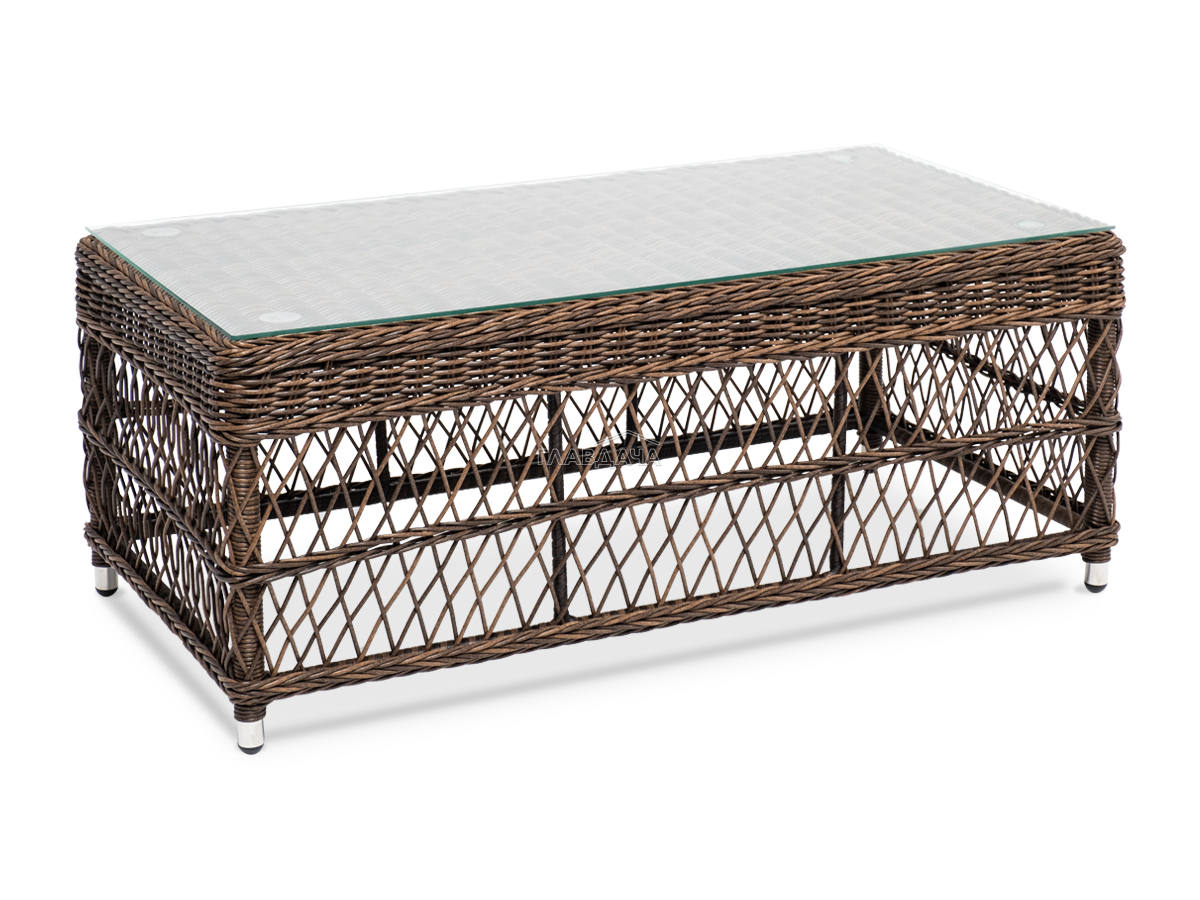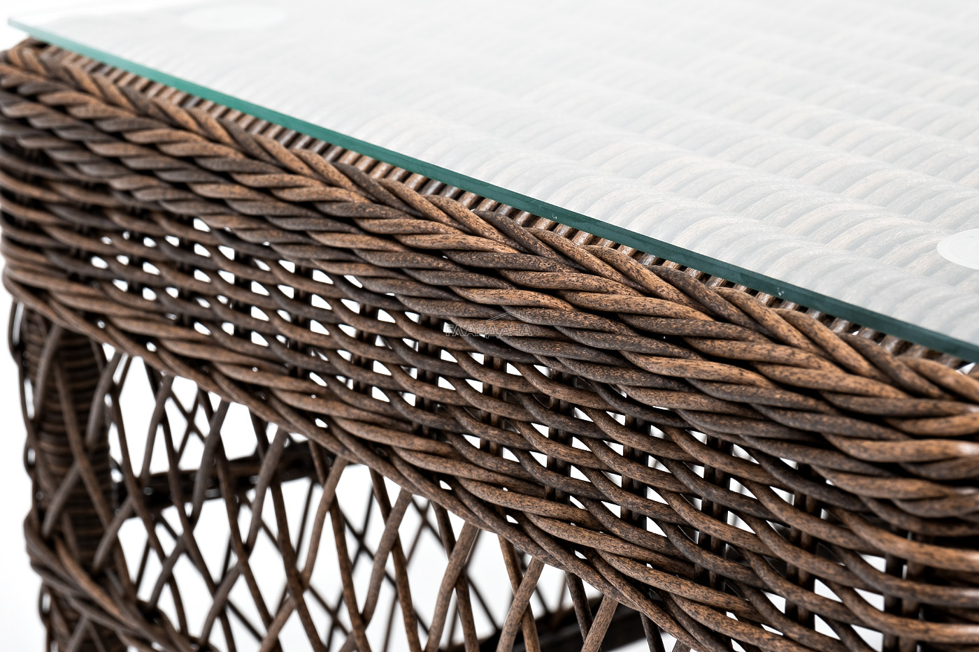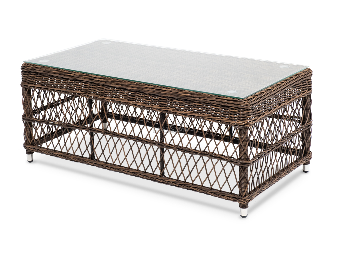 Журнальный столик «Гранд Латте» гармонично вписывается в зону отдыха, обустроенную на свежем воздухе. Размер модели – 1120×570×450 мм.