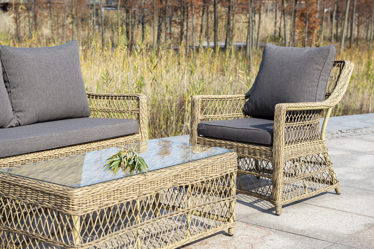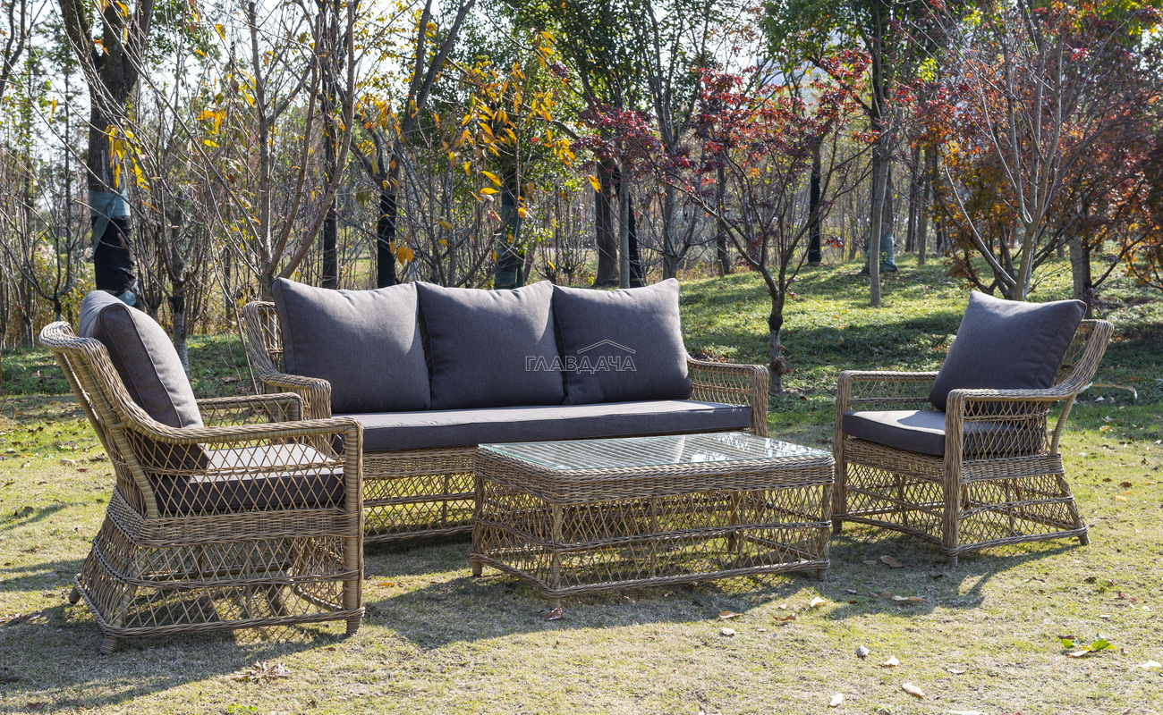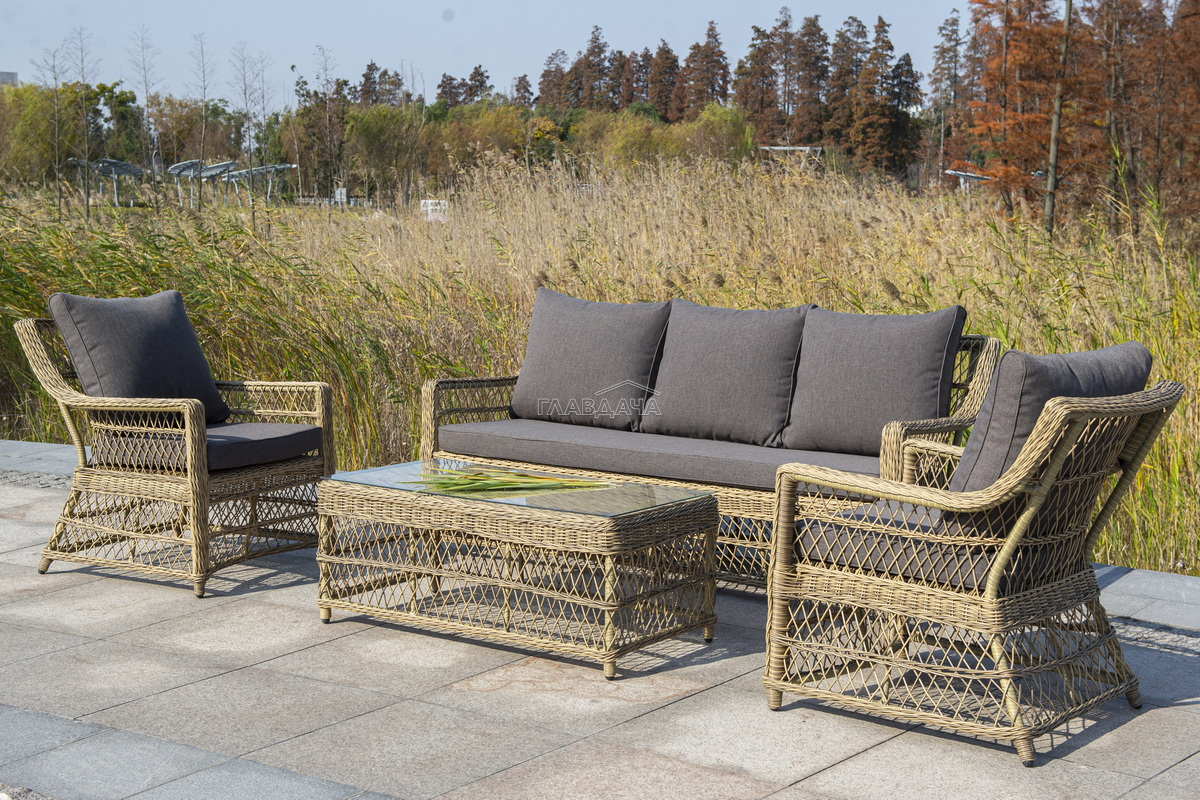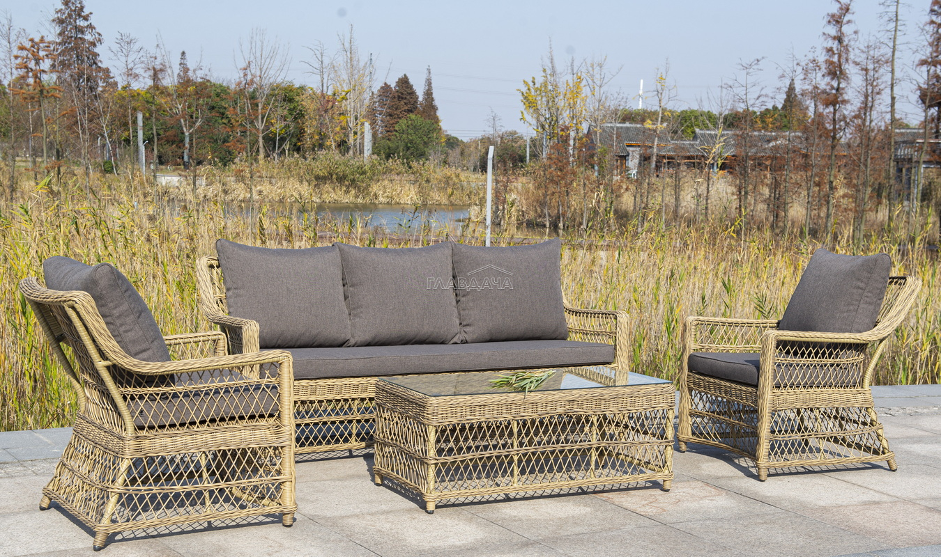 Журнальный столик «Гранд Латте» гармонично вписывается в зону отдыха, обустроенную на свежем воздухе. Размер модели – 1120×570×450 мм.