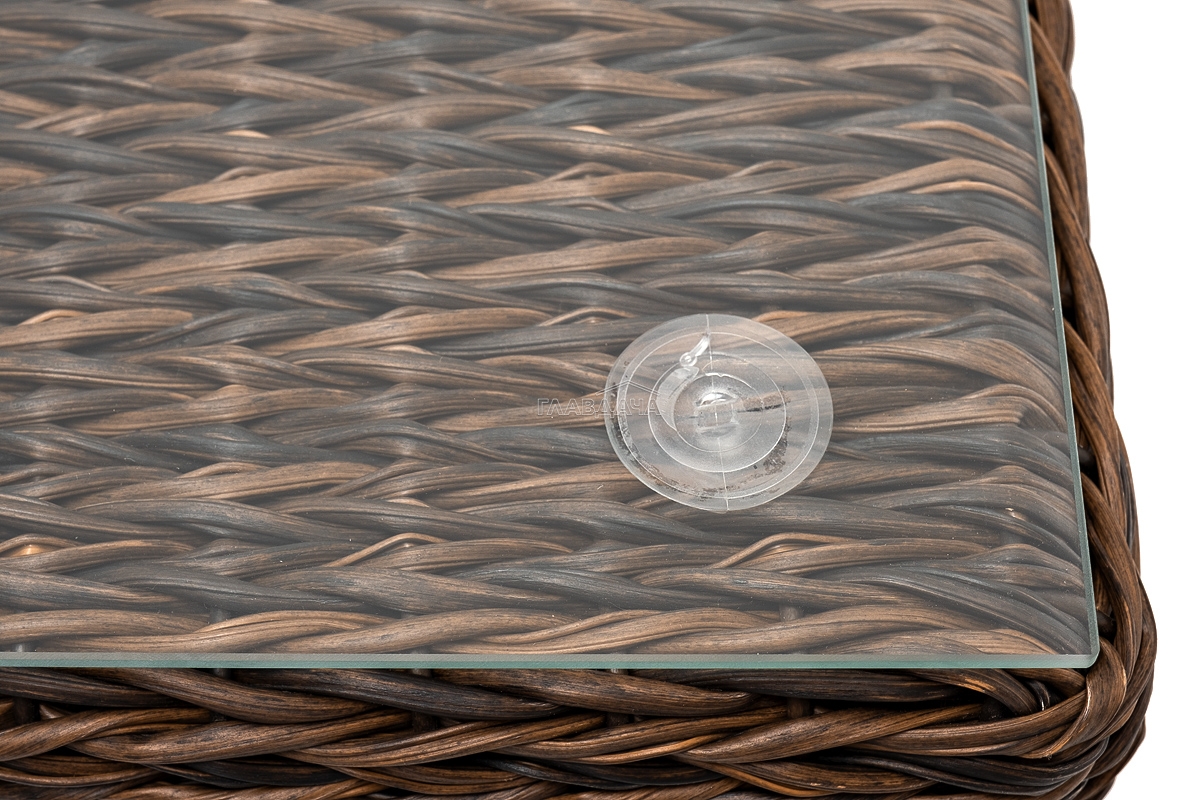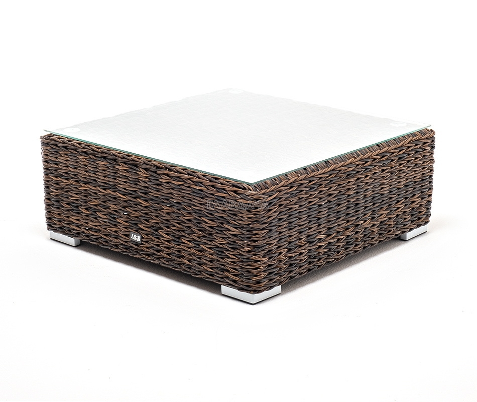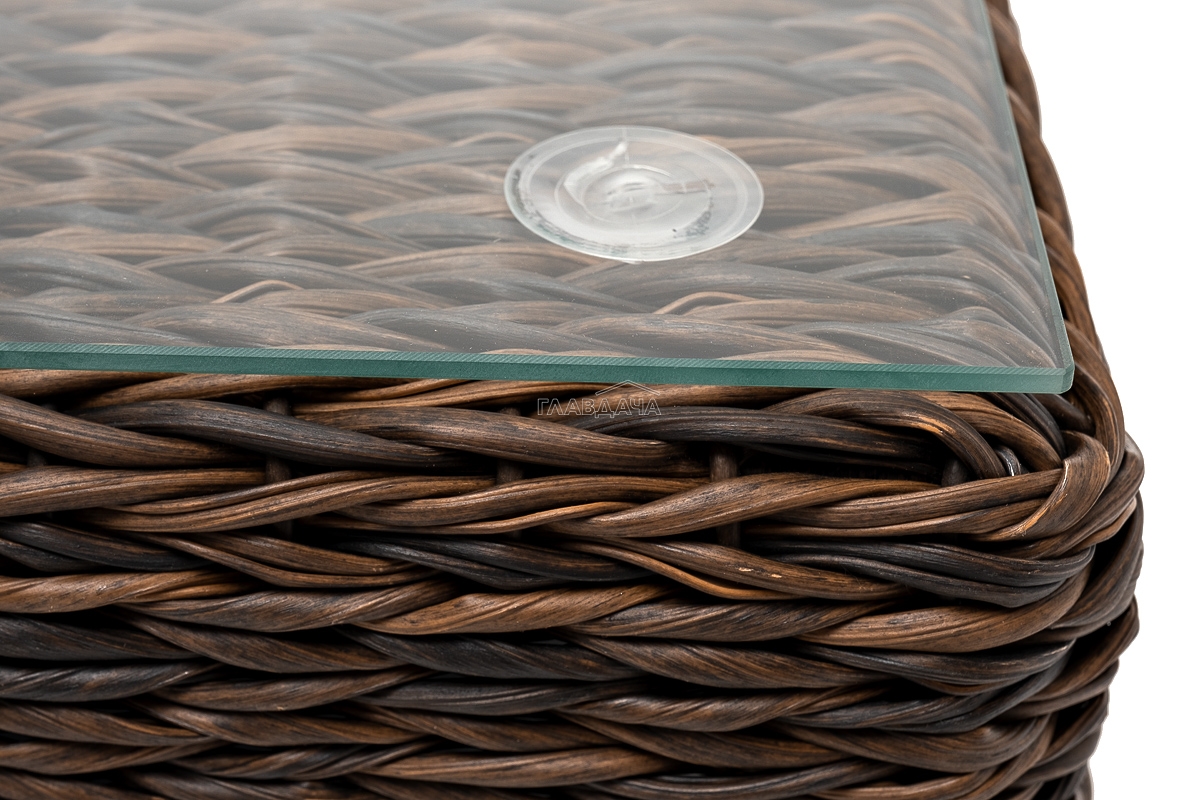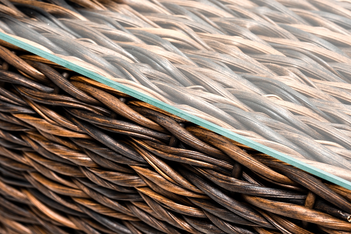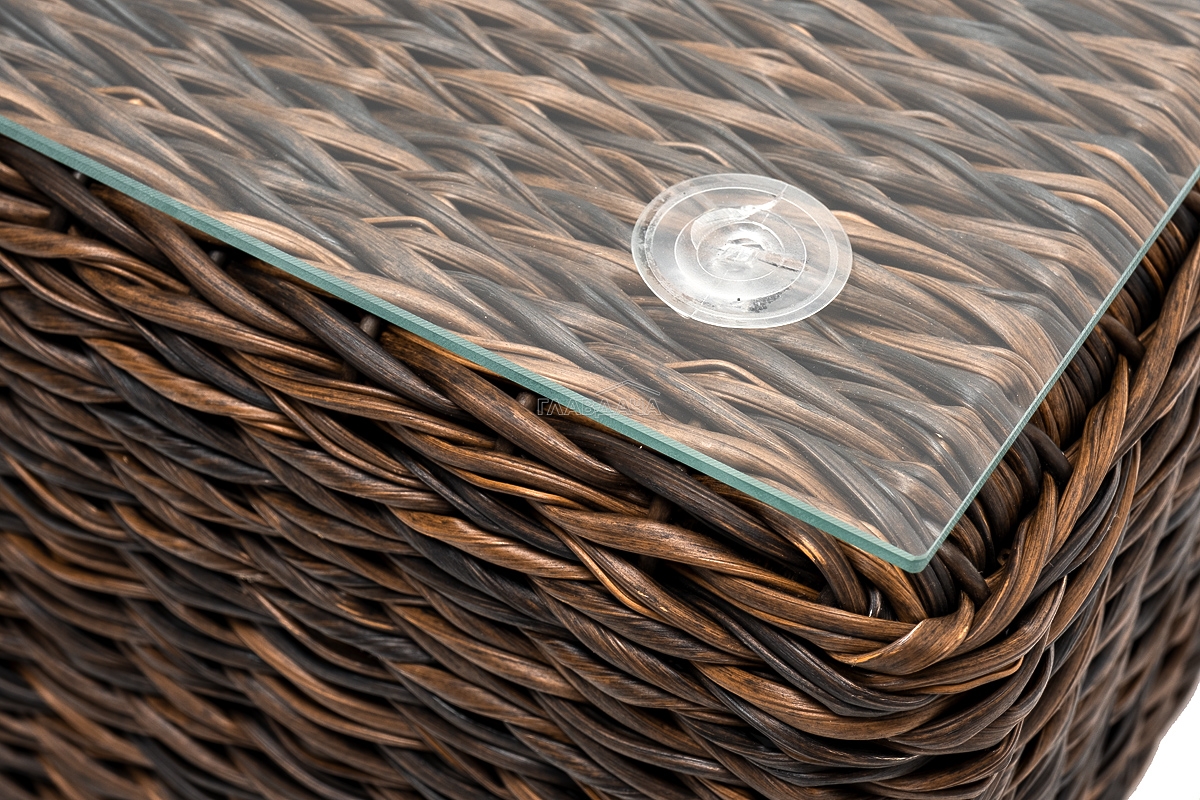 Размер модели – 740×740×300 мм. Компактные габариты позволяют удобно разместить мебельный элемент в месте с ограниченным свободным пространством. Столик имеет прочный алюминиевый каркас. Ручное плетение вида "гиацинт" сделано из искусственного ротанга и представлено в коричневом цвете.