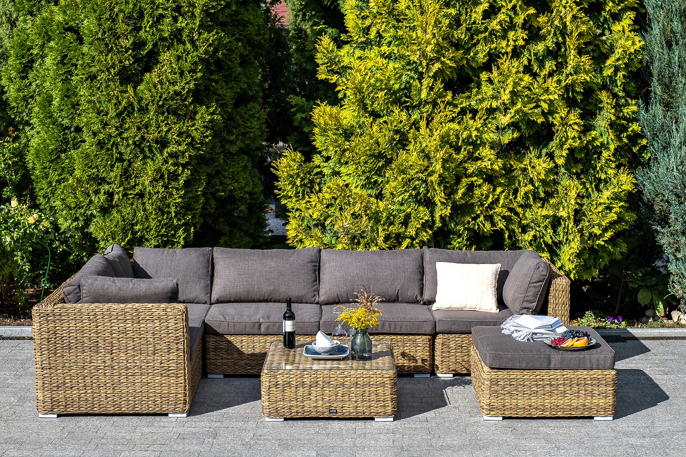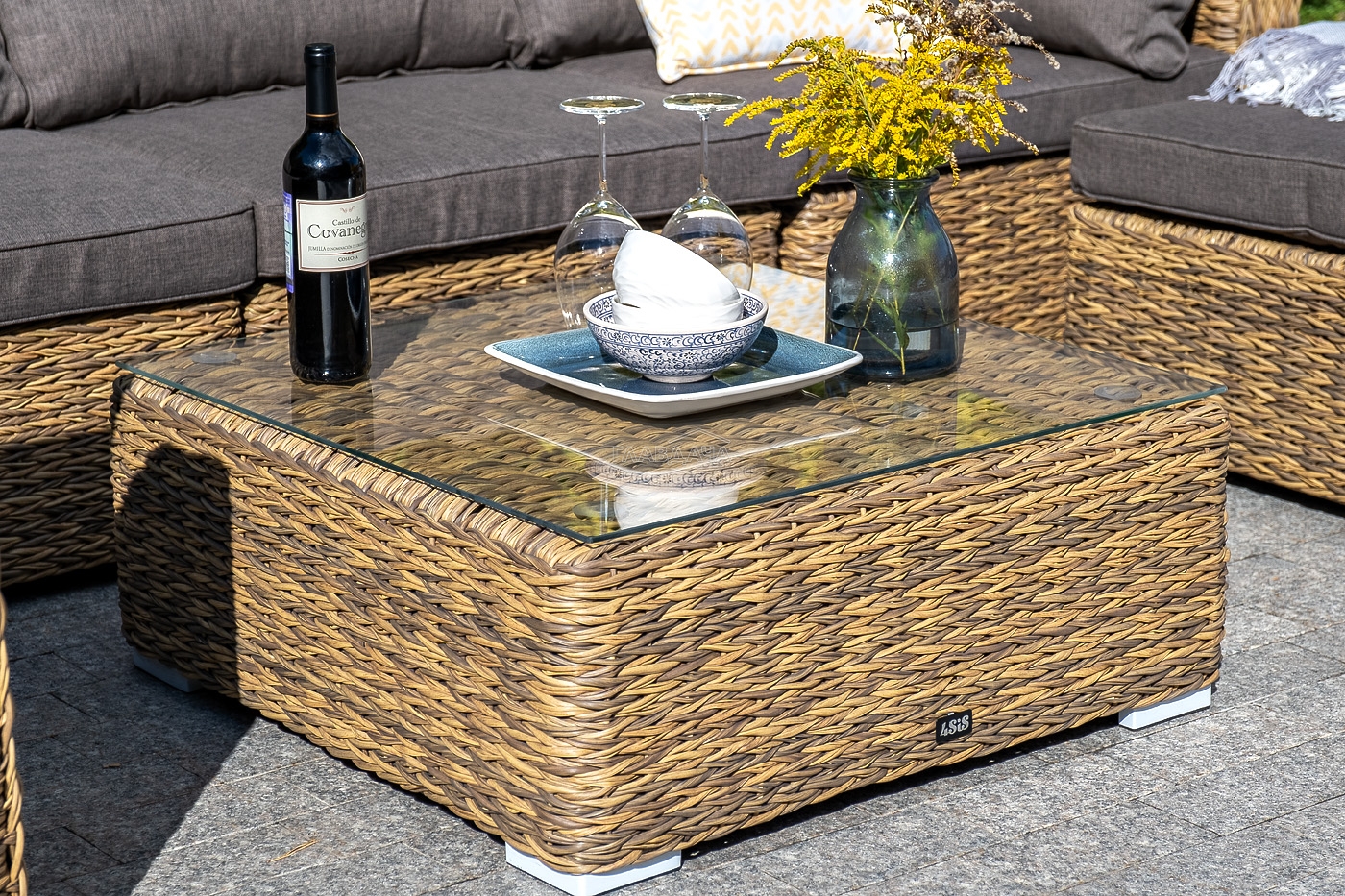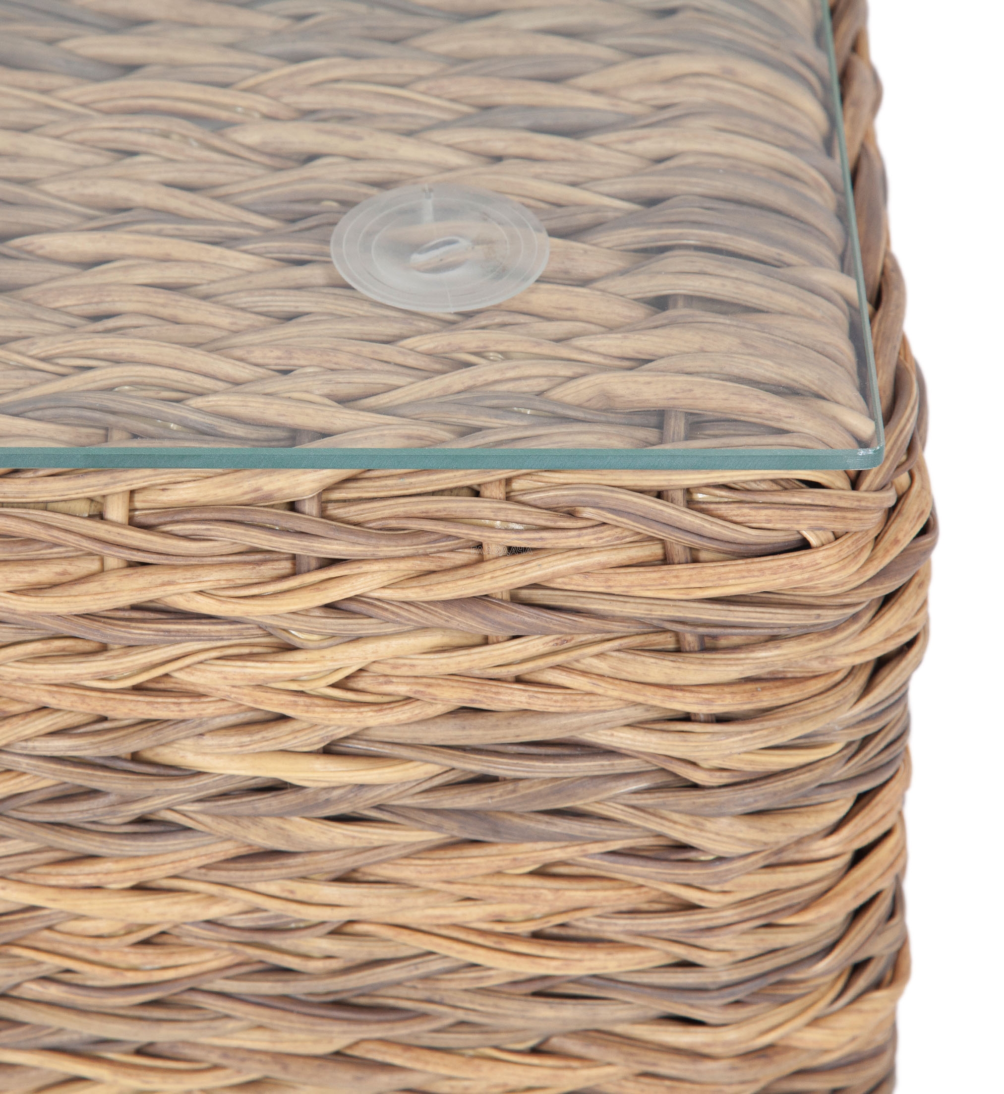 Размер модели – 740×740×300 мм. Компактные габариты позволяют удобно разместить мебельный элемент в месте с ограниченным свободным пространством. Столик имеет прочный алюминиевый каркас. Ручное плетение вида "гиацинт" сделано из искусственного ротанга и представлено в соломенном цвете.