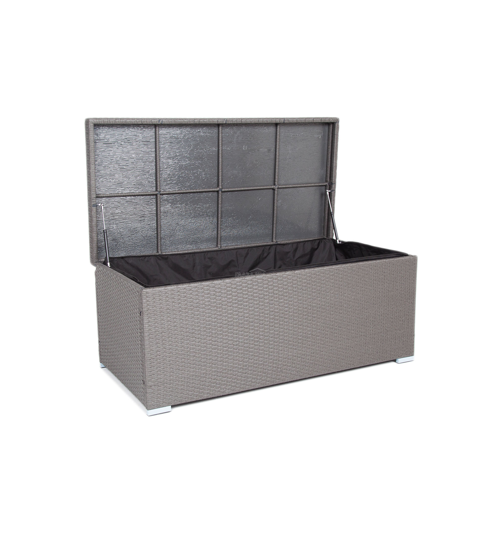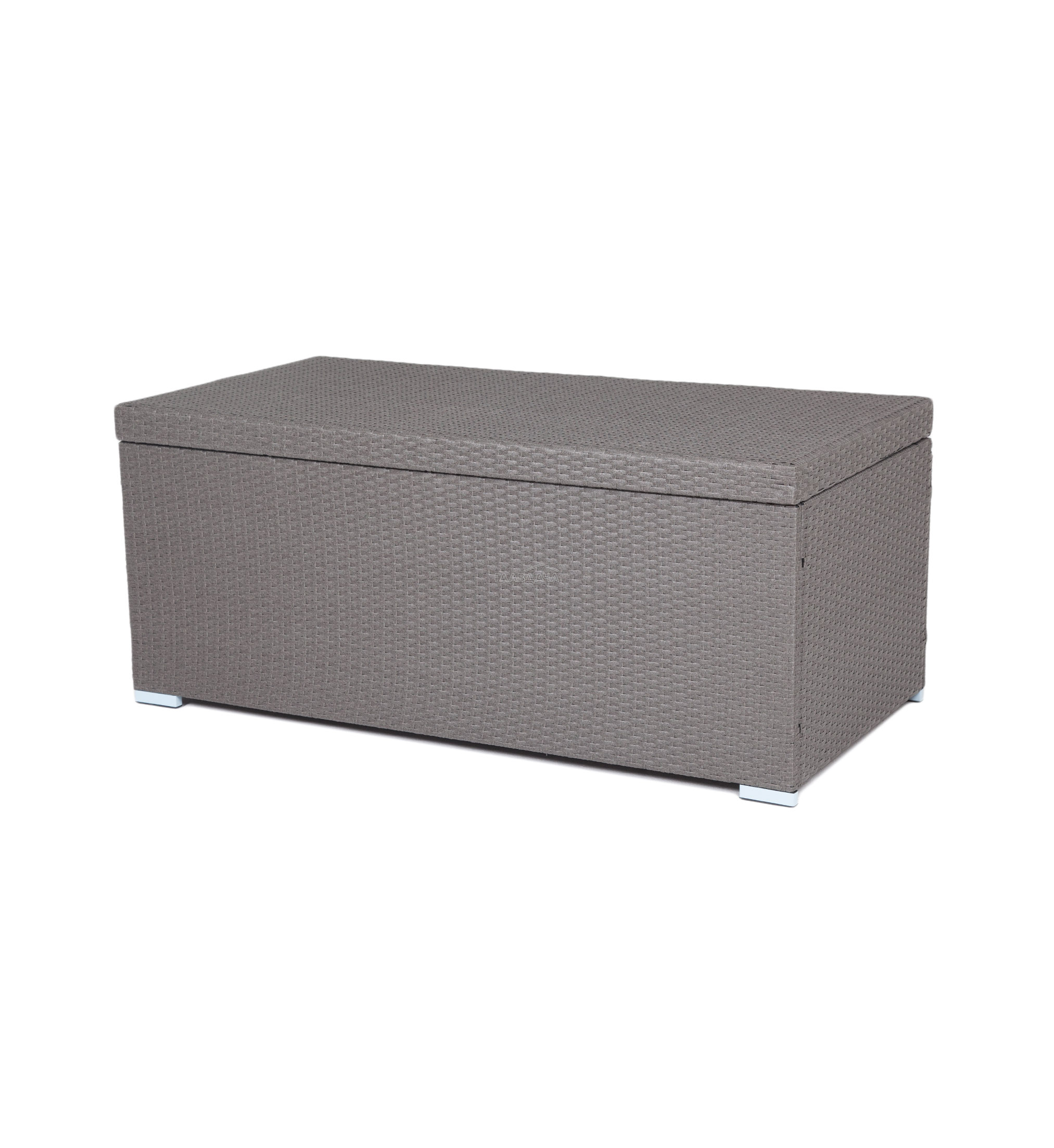«Порту» вместительный сундук из плоского искусственного ротанга в цвете "графит". В основе - алюминиевый каркас.