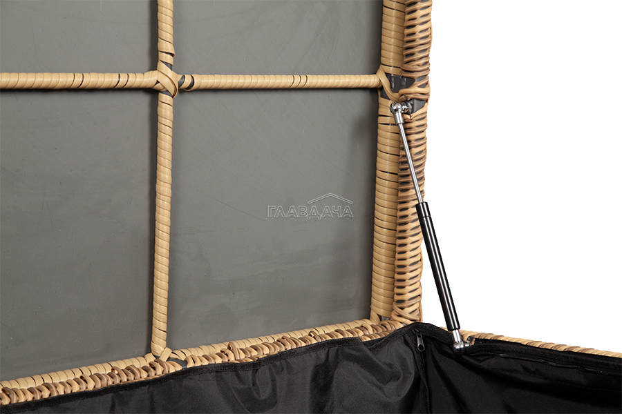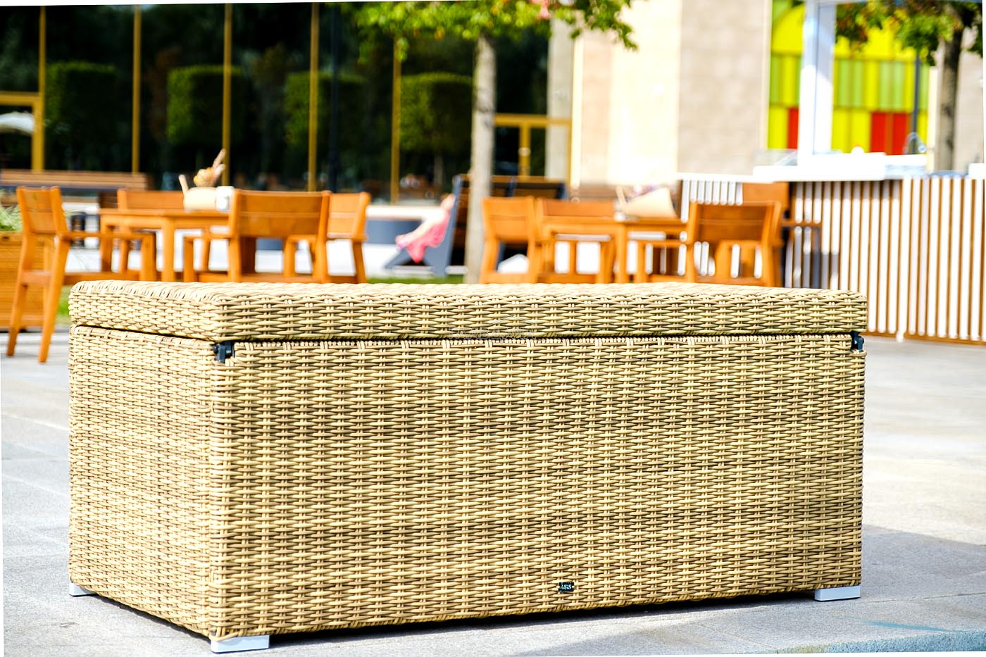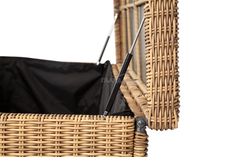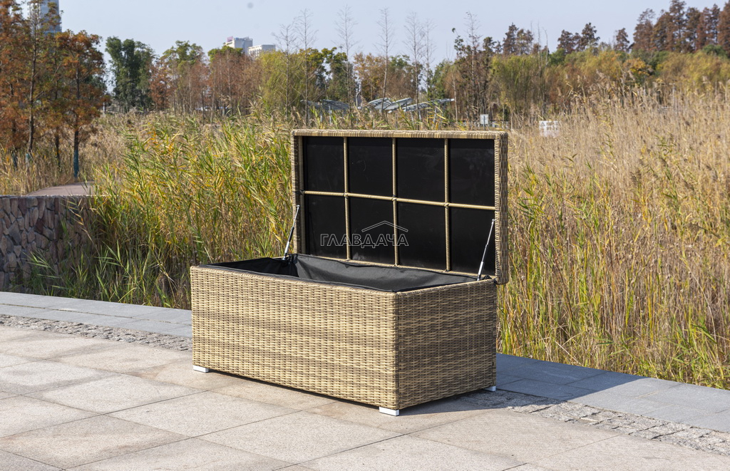 Сундук предназначен для хранения текстильных изделий, водонепроницаем, поэтому можно использовать на улице, не боясь осадков.