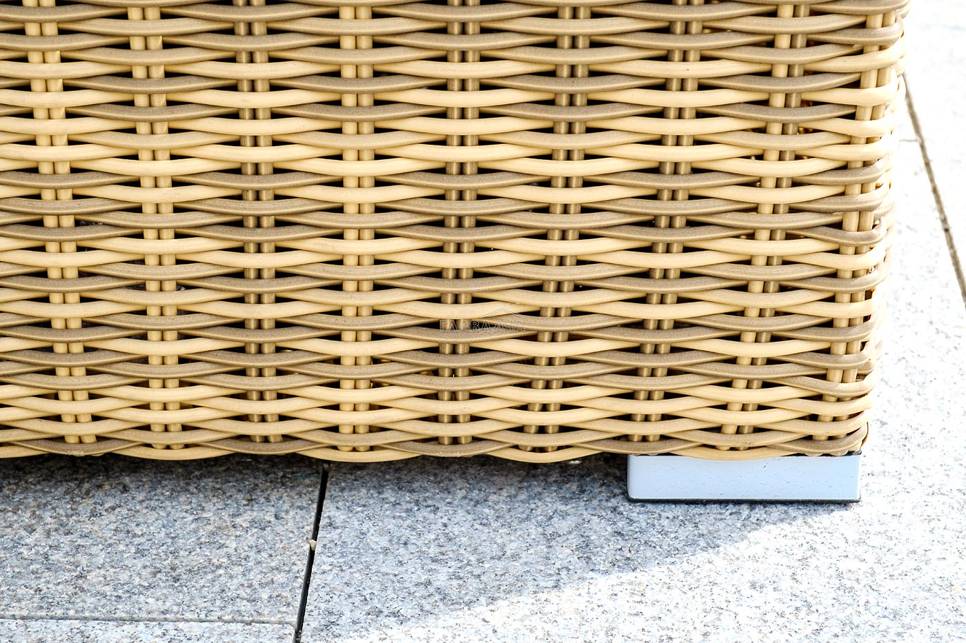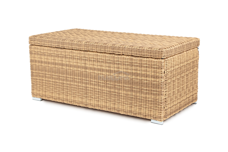 «Порту» вместительный сундук из плоского искусственного ротанга соломенного оттенка. В основе - алюминиевый каркас.