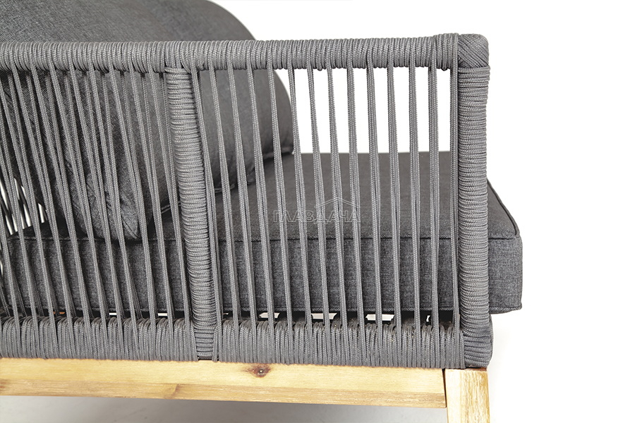 «Барселона» диванный модуль боковой правый входит в состав дивана с аналогичным названием. Имеет деревянный каркас, оплетенный синтетической полиэфирной лентой - роупом серого цвета.
