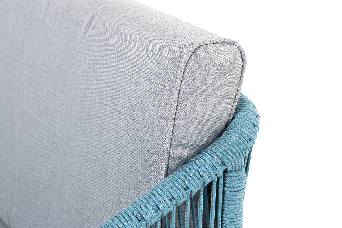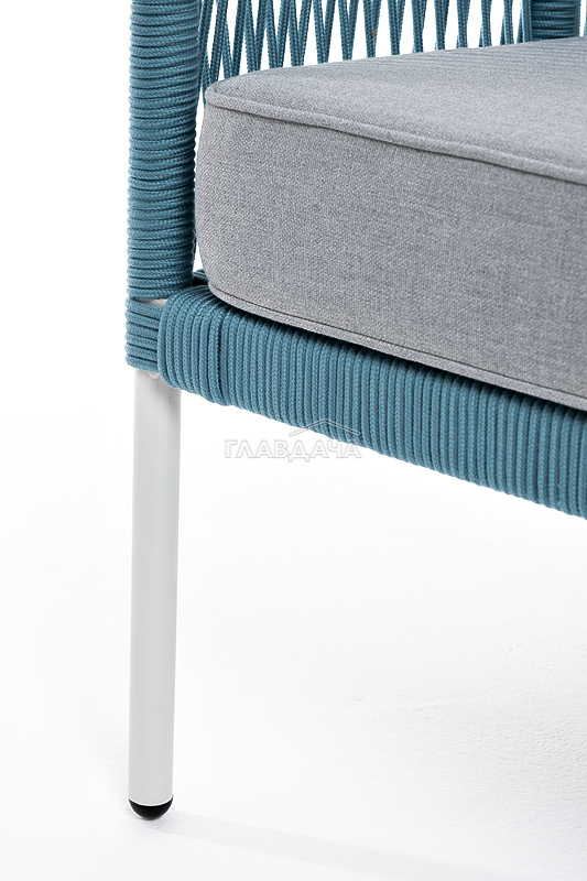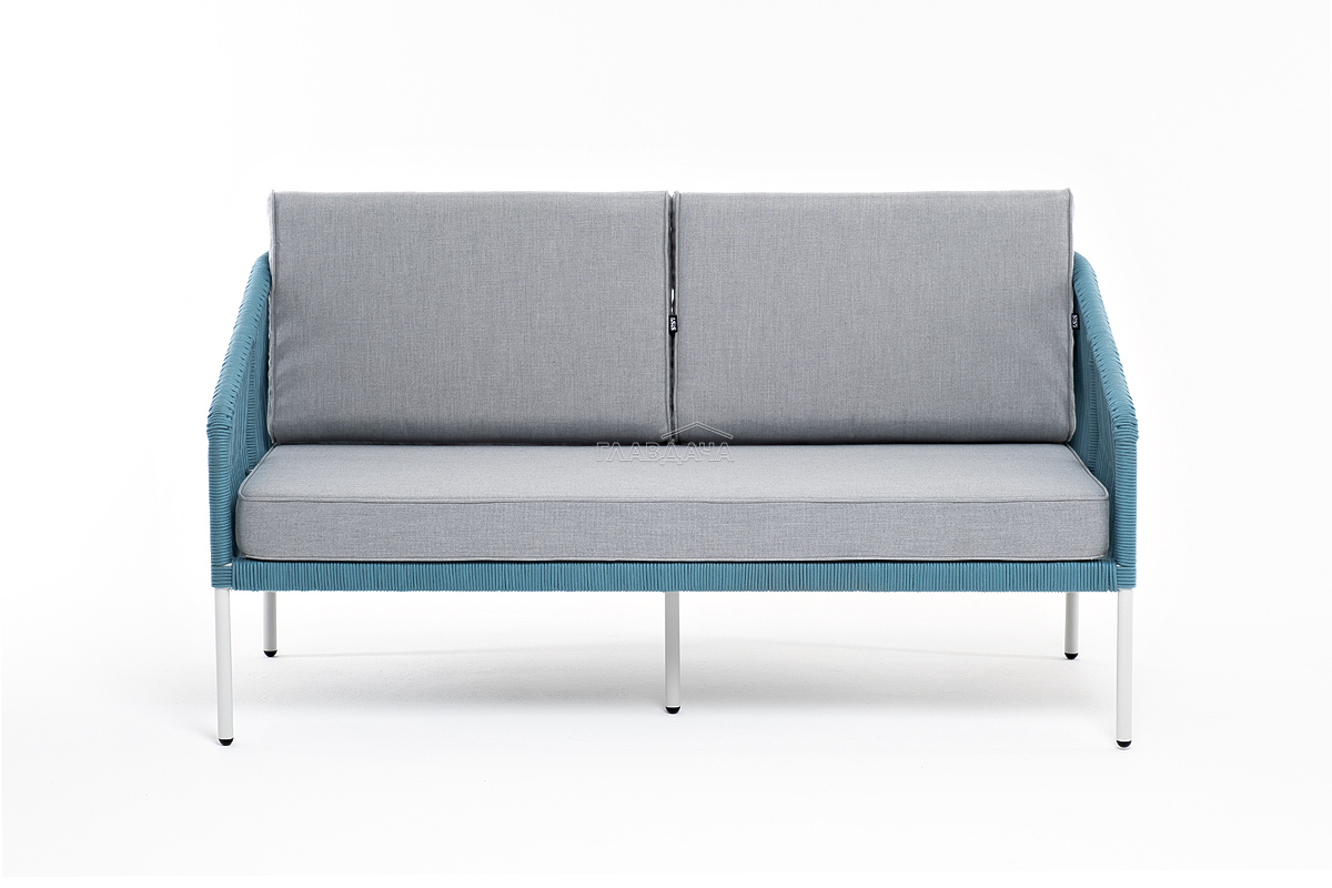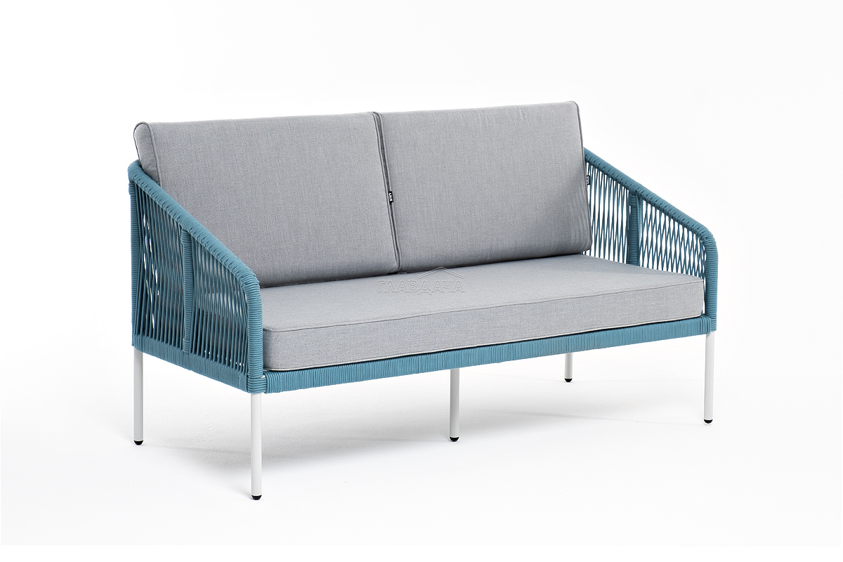 Двухместный диван «Канны» плетеный бирюзовым роупом - эластичными синтетическими лентами, выполненными из полиэфирных волокон.
