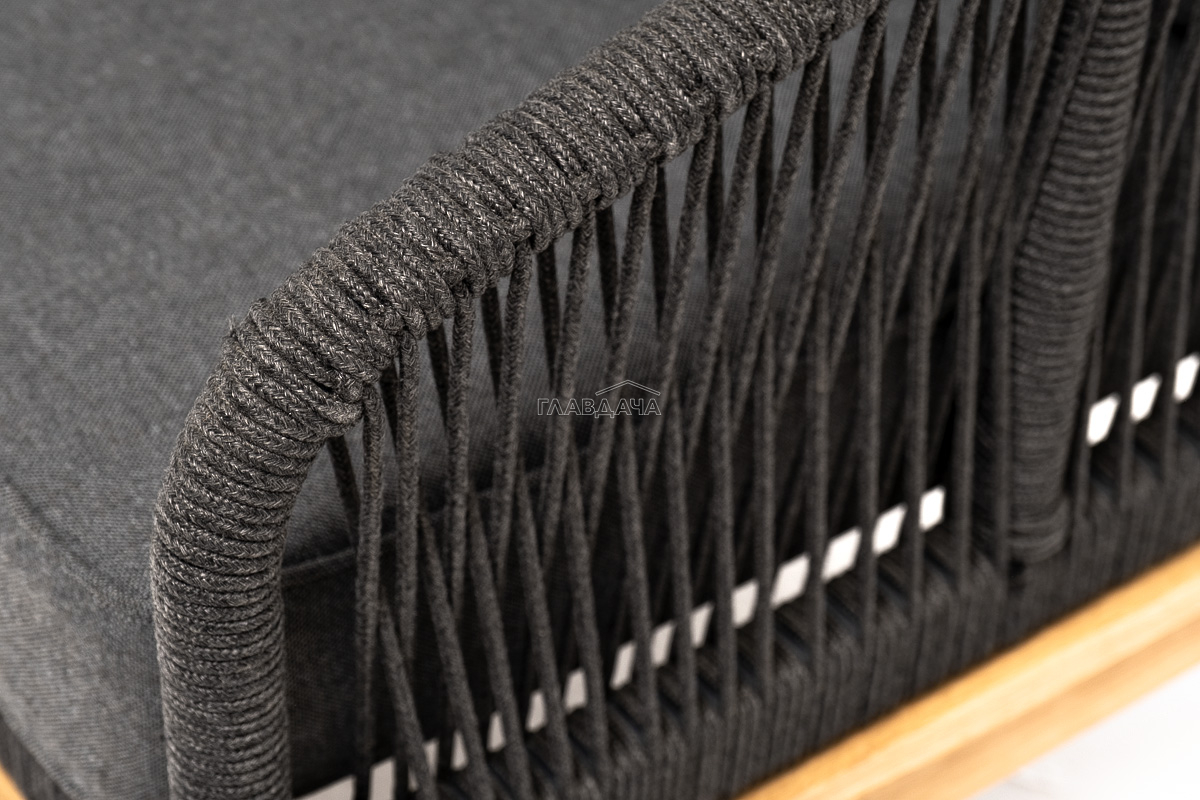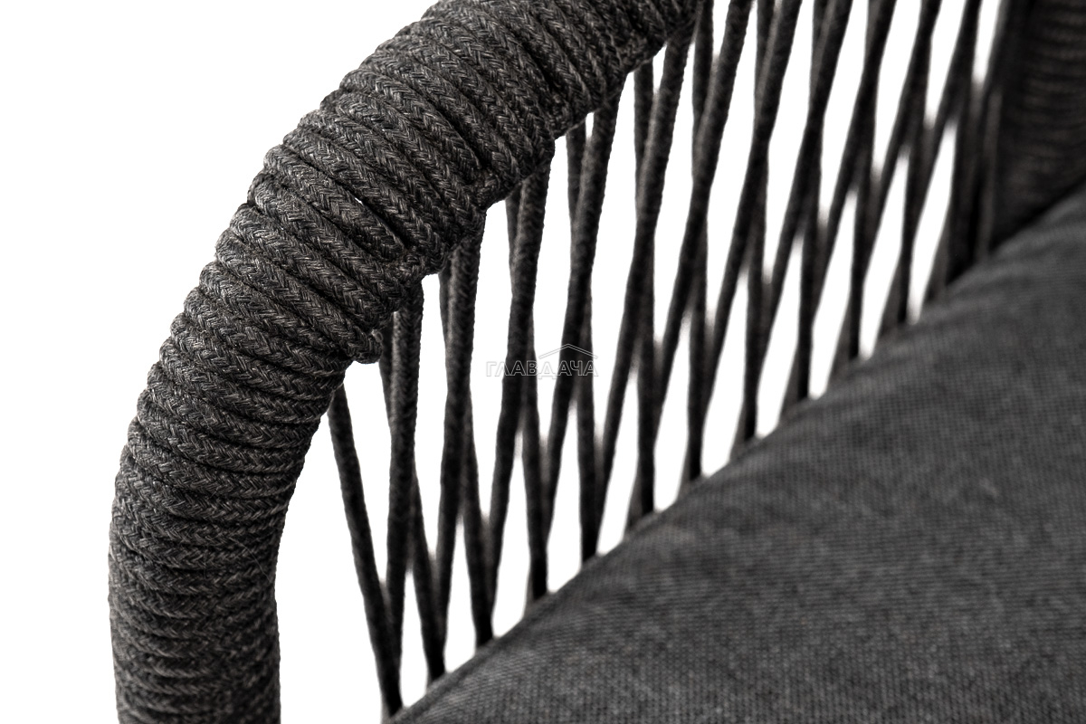 Двухместный диван «Канны» плетеный коричневым роупом - эластичными синтетическими лентами, выполненными из полиэфирных волокон.