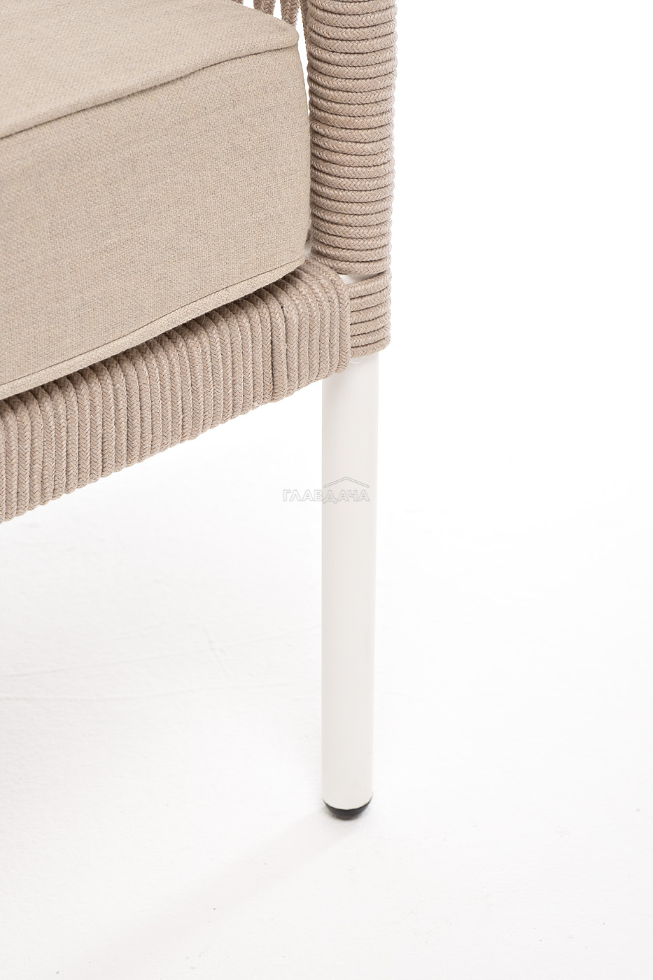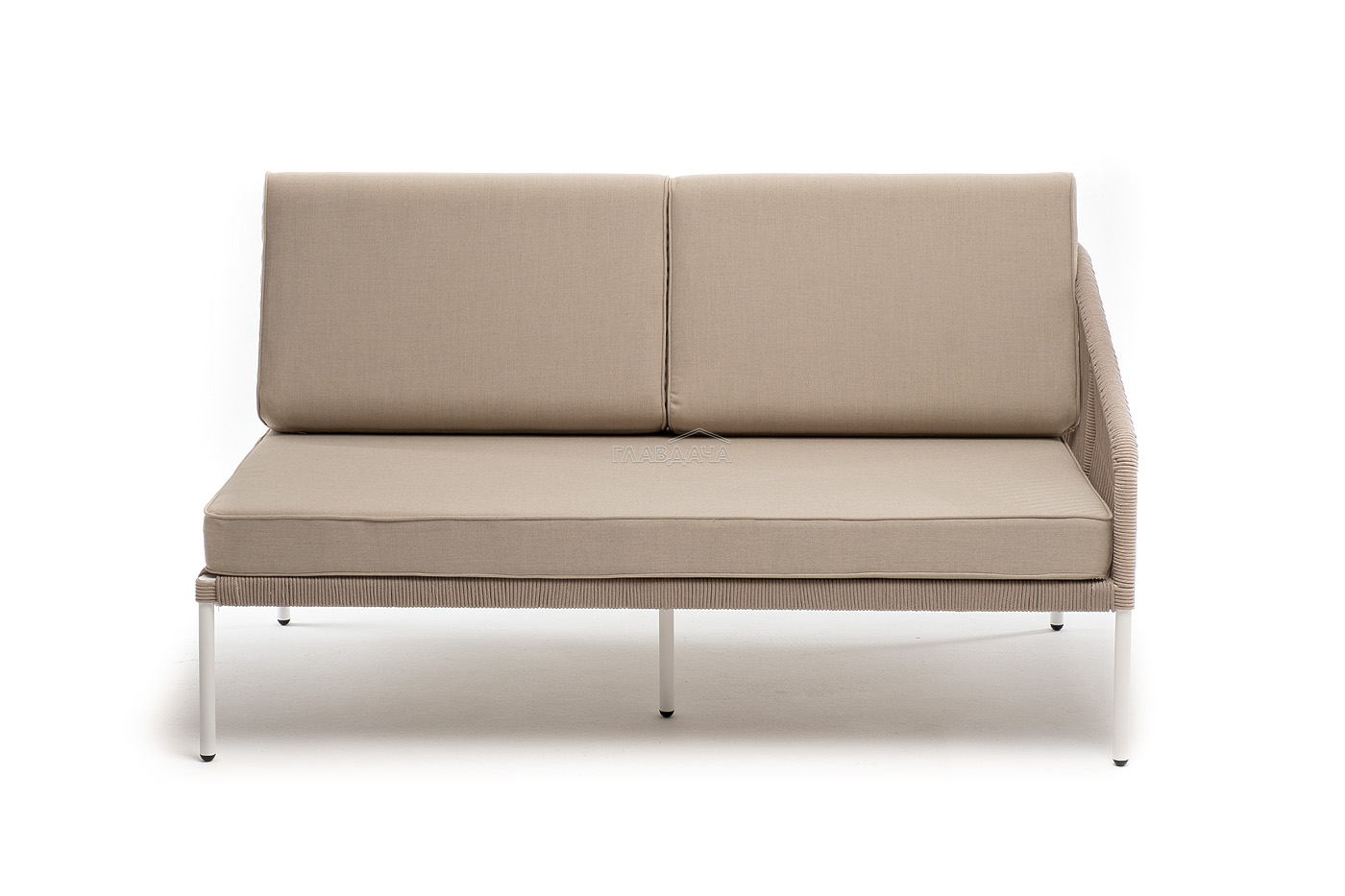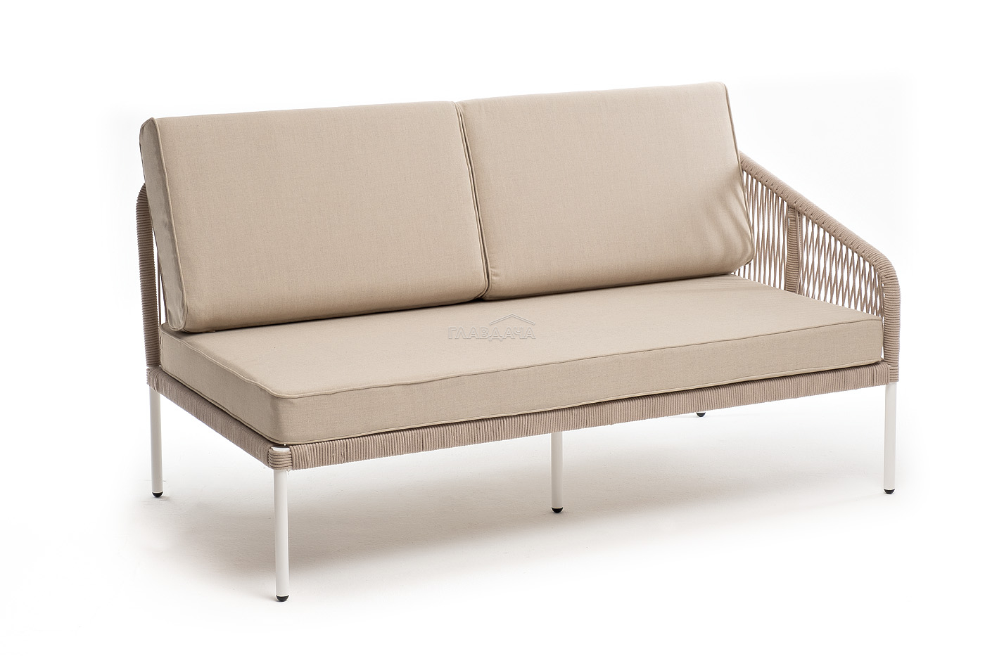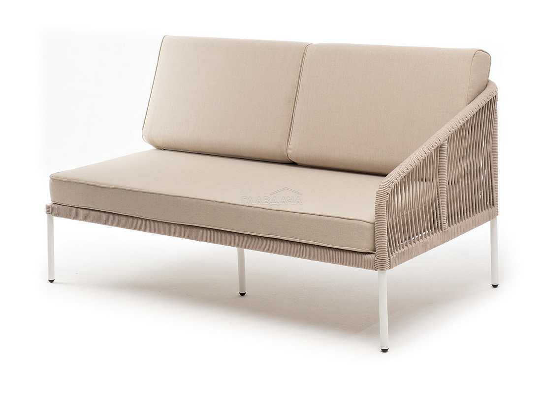 Модуль имеет алюминиевый каркас, окрашенный порошковой краской в белый цвет. Боковины каркаса вручную оплетены роупом - эластичными синтетическими лентами, изготовленными из высокопрочных полиэфирных волокон. Цвет оплетки - бежевый.