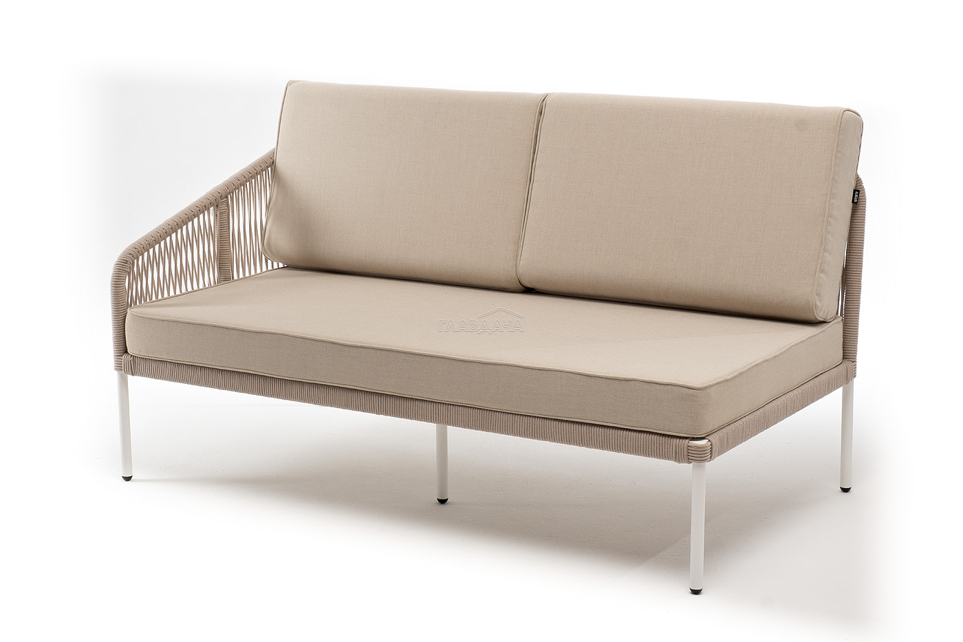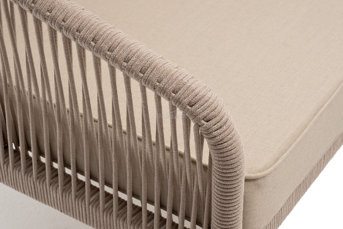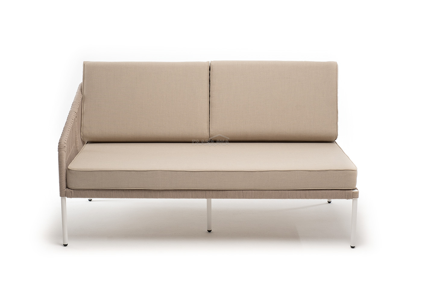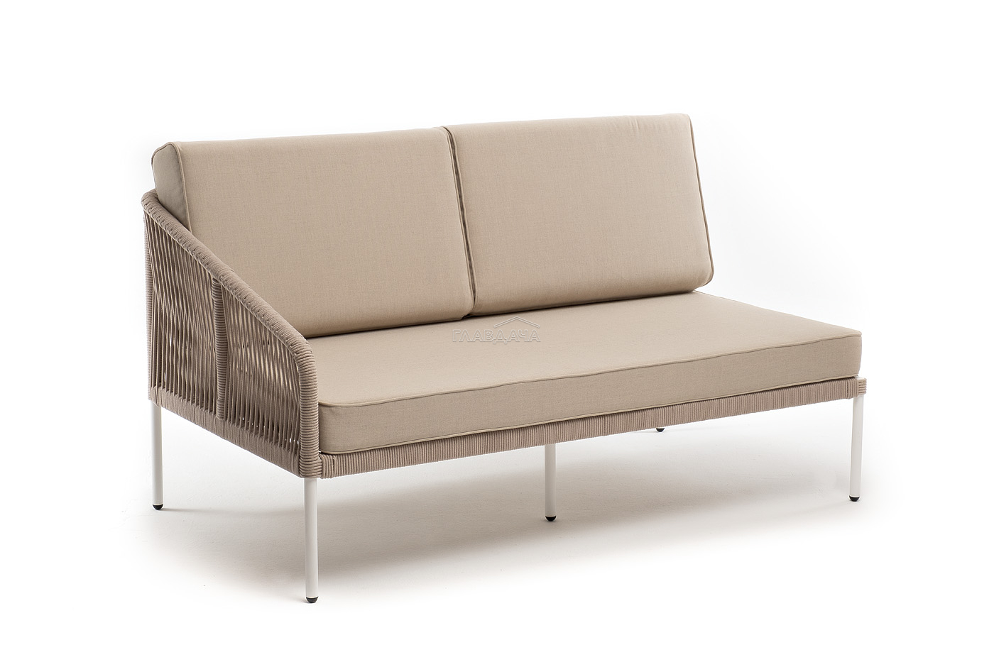 Модуль имеет алюминиевый каркас, окрашенный порошковой краской в белый цвет. Боковины каркаса вручную оплетены роупом - эластичными синтетическими лентами, изготовленными из высокопрочных полиэфирных волокон. Цвет оплетки - бежевый.