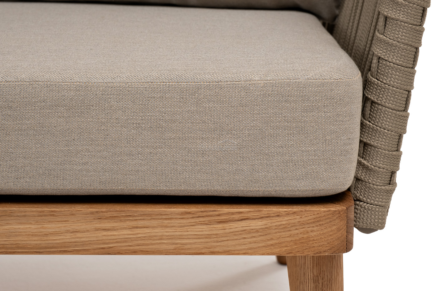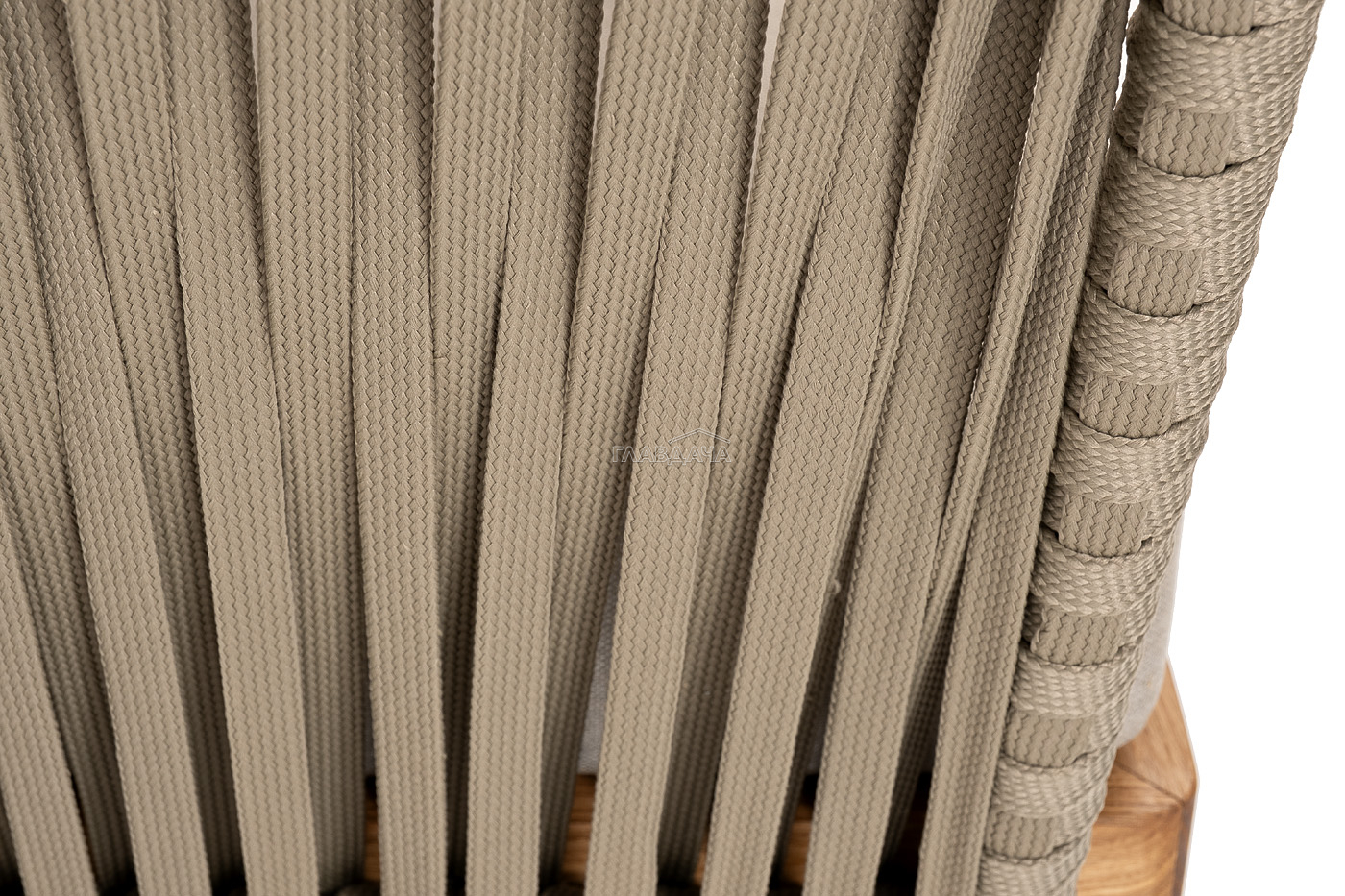 Боковины каркаса и спинка вручную оплетены роупом - эластичными синтетическими лентами, изготовленными из высокопрочных полиэфирных волокон. Цвет оплетки - серо-коричневый. Основание - дуб.