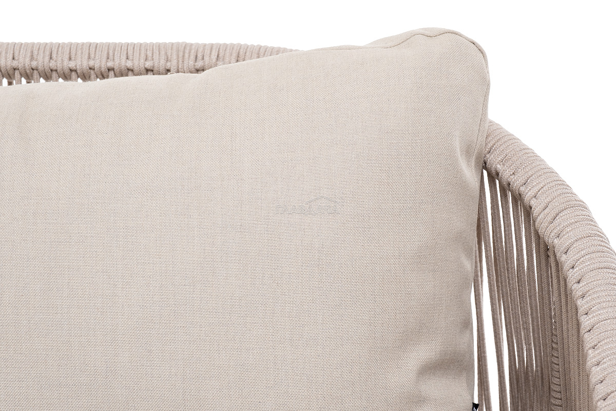 Подушки состоят из наполнителя и съемных чехлов, которые обработаны влагоотталкивающей пропиткой бежевого цвета. Материал - 100% полиэстер, плотностью 300гр/м2.
