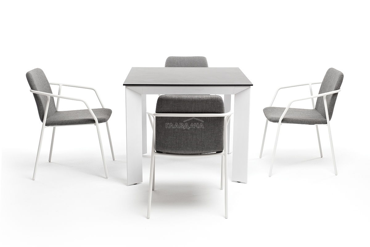 - Стол «Венето» со столешницей из HPL-пластика, размер столешницы - 900×900 мм, цвет - «серый гранит». Высота стола - 750 мм