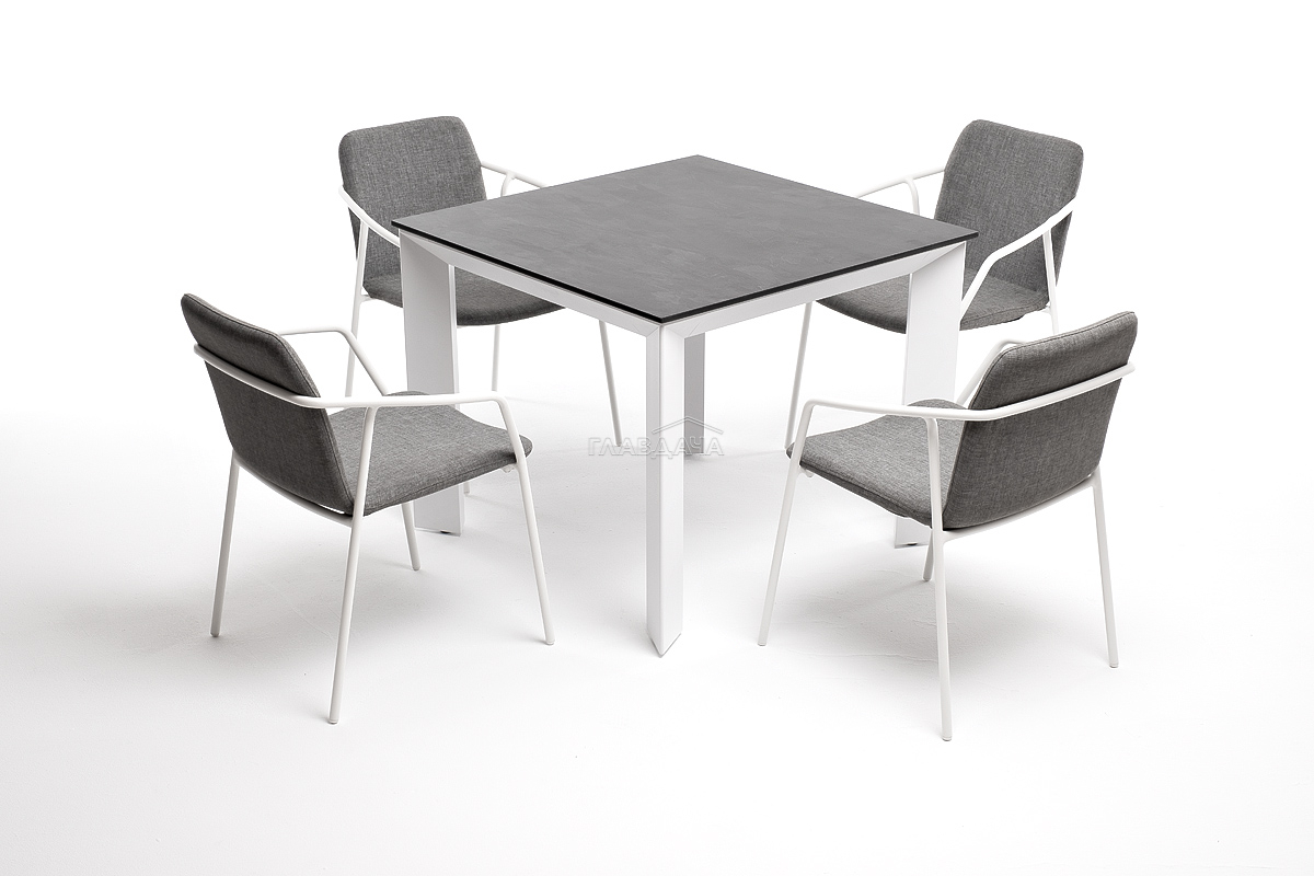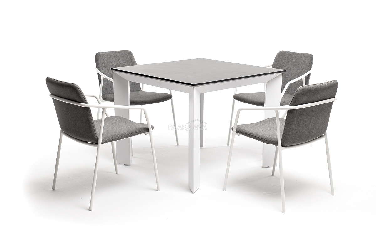 - 4 стула «Марокко» из текстилена nanotex, современного материала для обивки мебели, размером - 575×600×800 мм, каркас белого цвета изготовлен из алюминия, что делает стул прочным и легким.