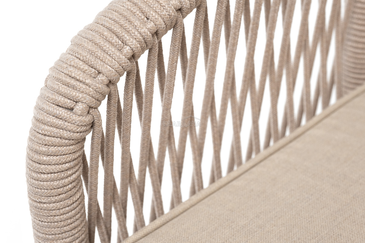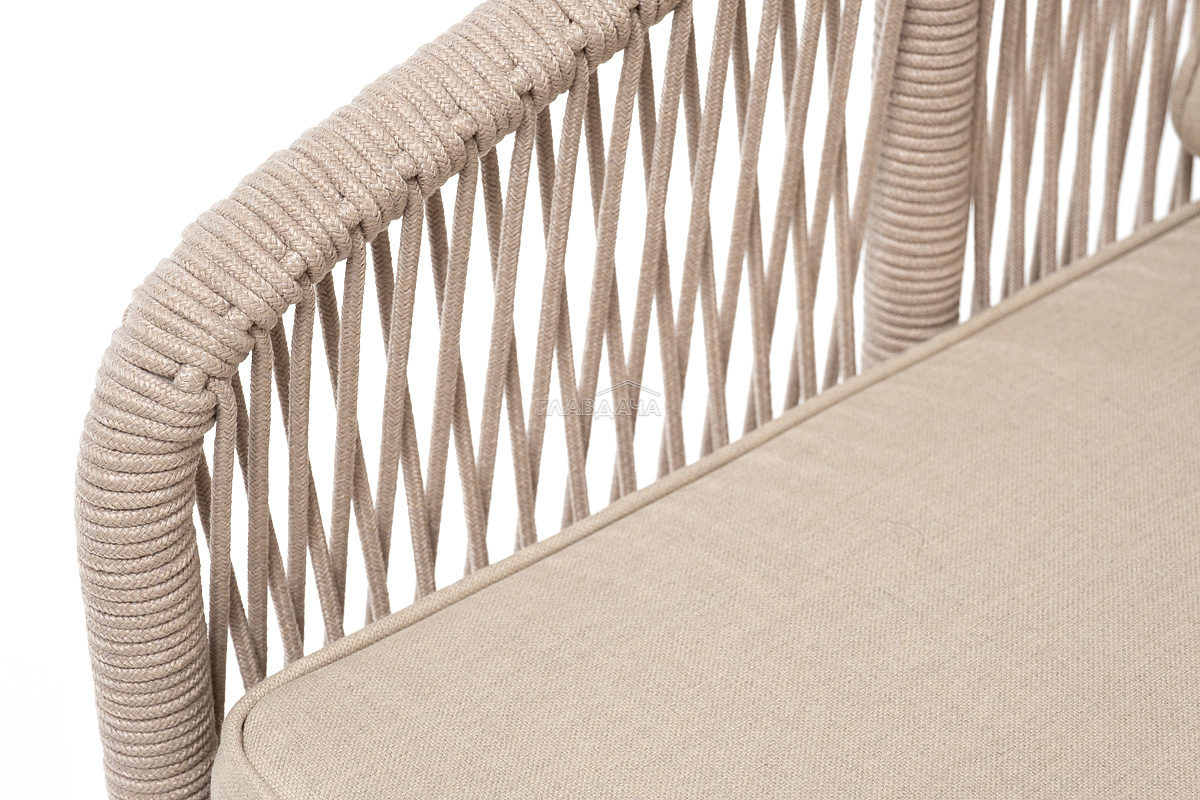 Приятное дополнение − подушки со съёмными чехлами аналогичного бежевого оттенка из влагоотталкивающей ткани, устойчивой к ультрафиолетовым лучам и неблагоприятным атмосферным воздействиям.