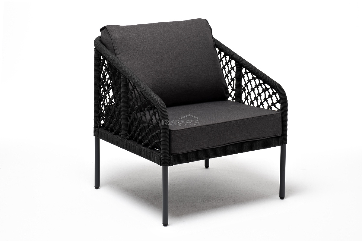 Кресло «Канны» с узловым плетением из роупа идеально подходит для комфортного отдыха в саду или на веранде.