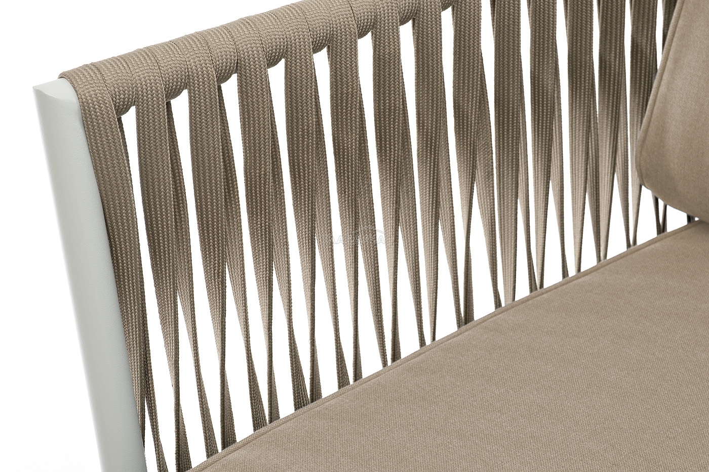 Боковины каркаса вручную оплетены роупом - эластичными синтетическими лентами, изготовленными из высокопрочных полиэфирных волокон. Цвет оплетки - серо-коричневый.