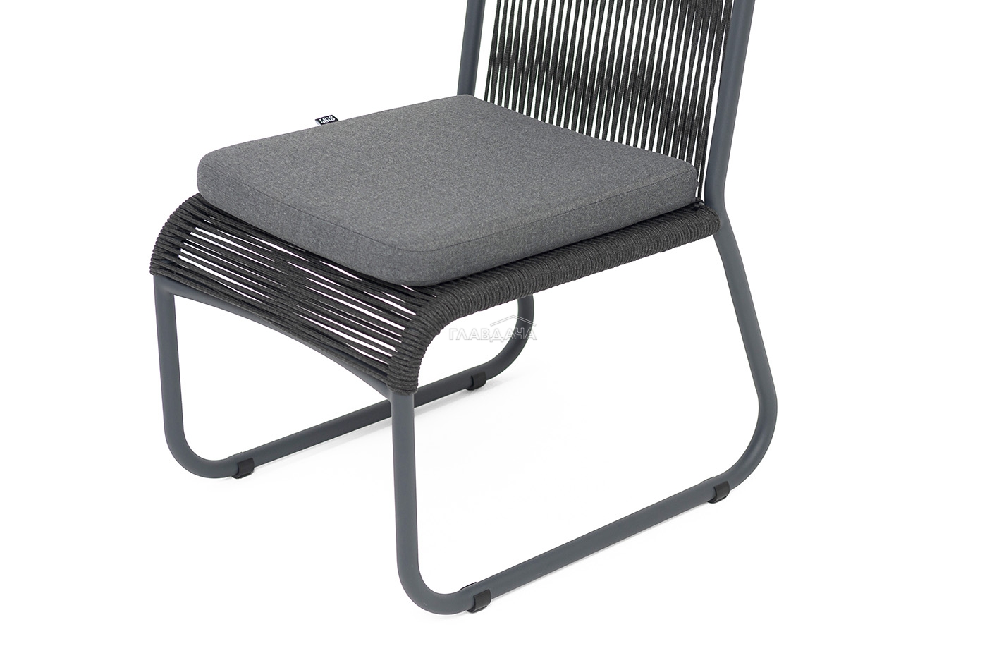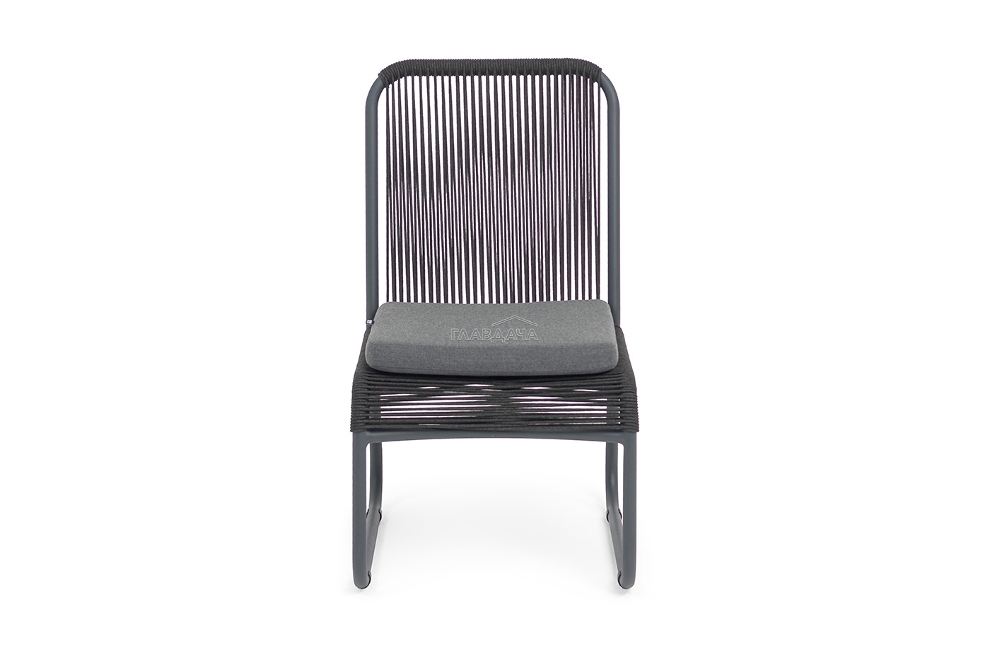 Выполнен из алюминиевого каркаса темно-серого (RAL7024) цвета. Оплетка - современный материал «роуп», которым каркас оплетался вручную.