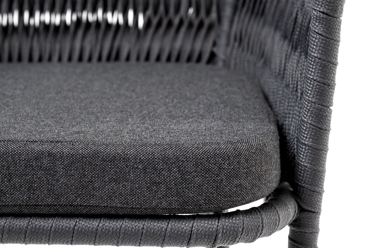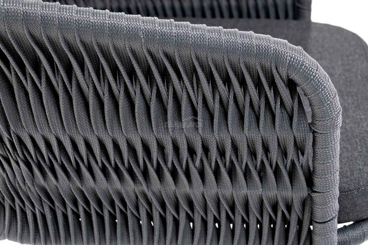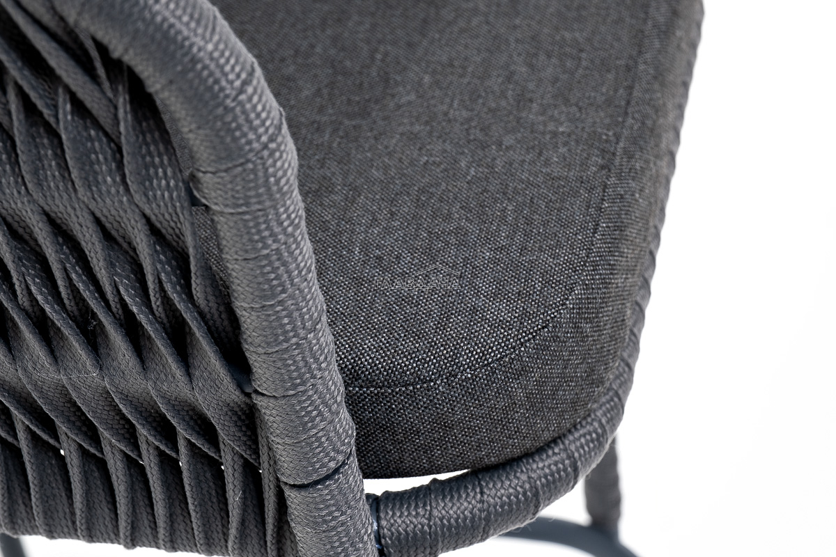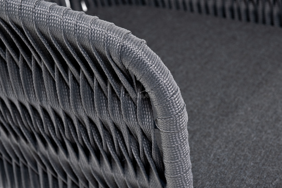 Каркас вручную оплетен серым роупом - эластичными синтетическими лентами из высокопрочных полиэфирных волокон.