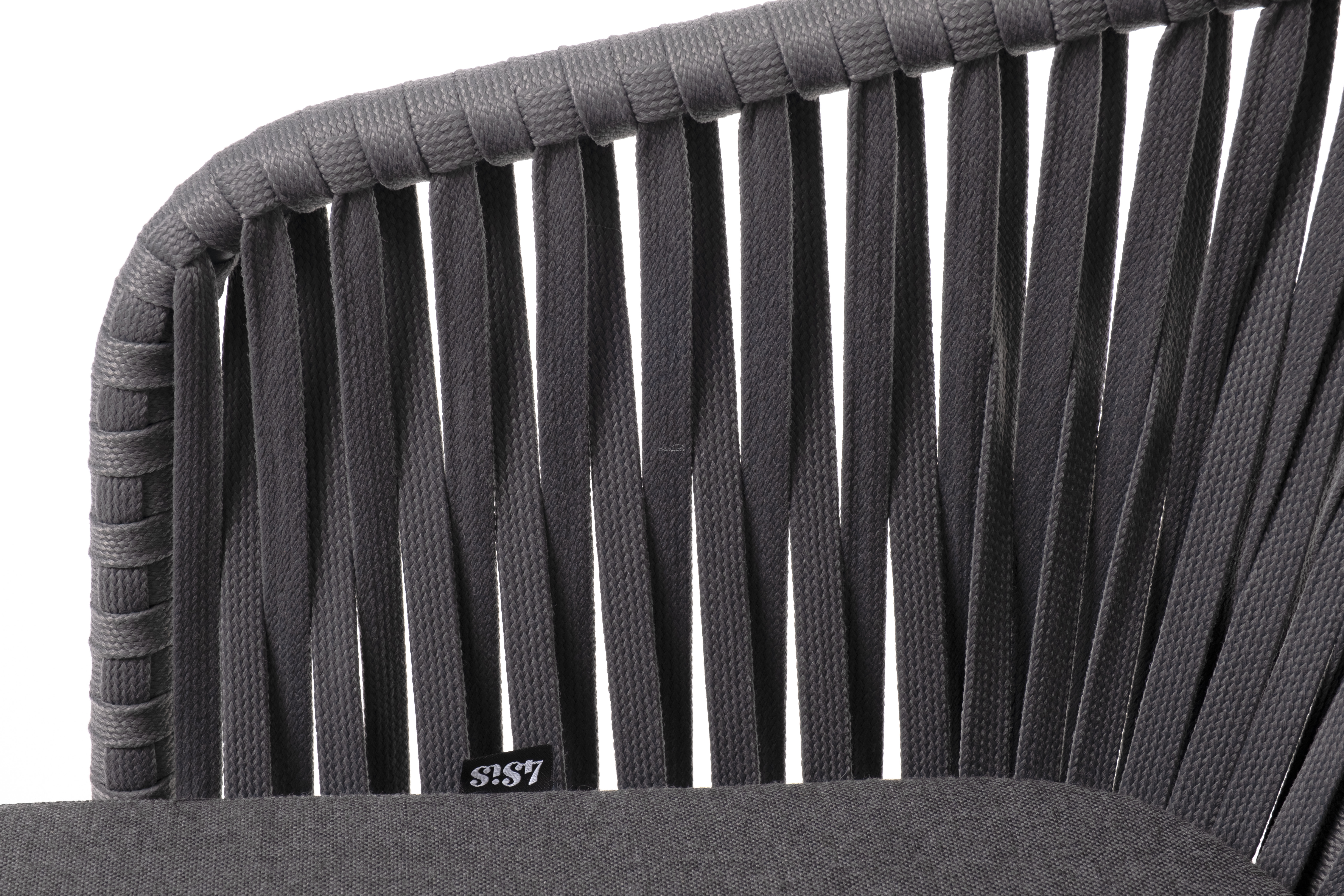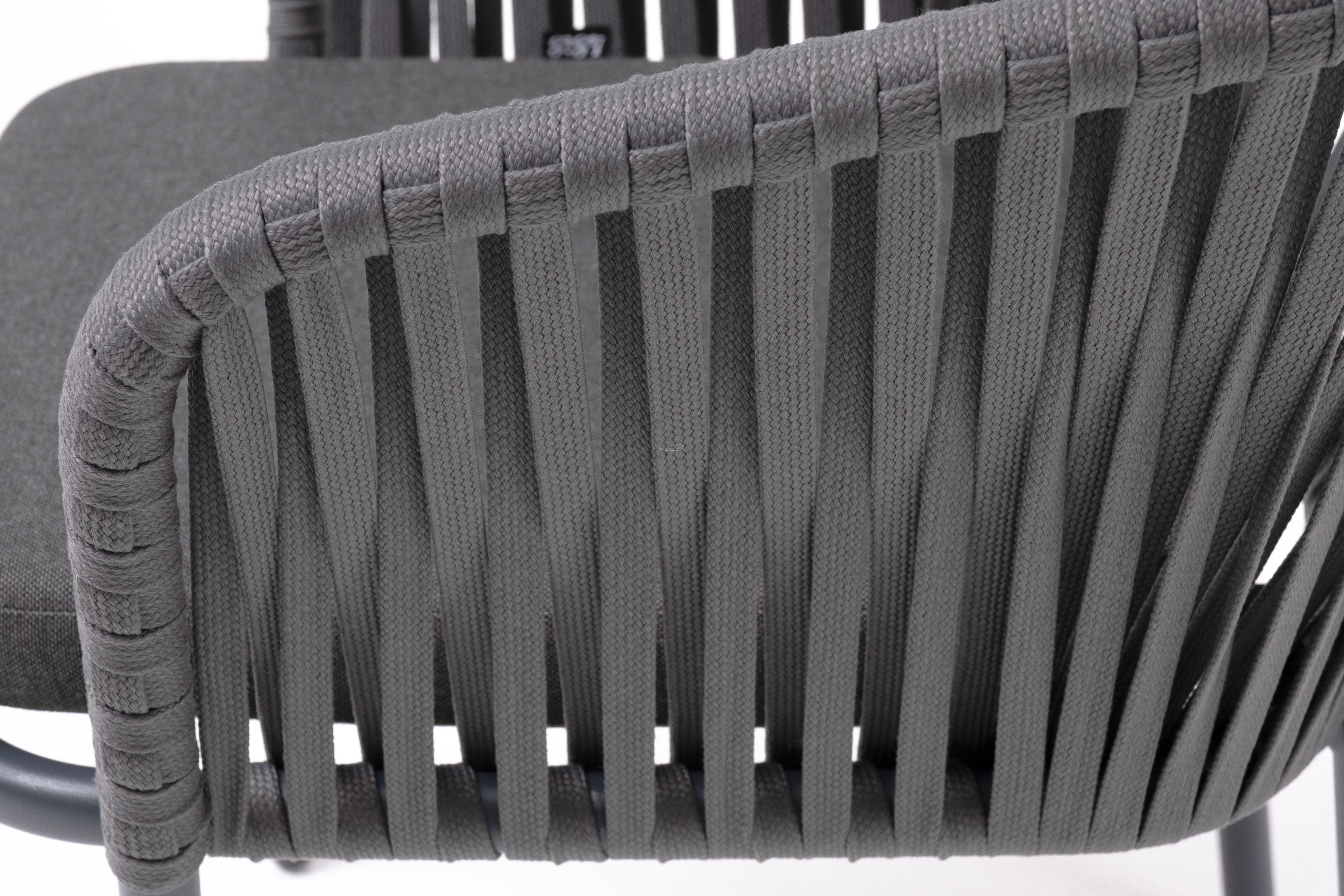 Каркас вручную оплетен серым роупом - эластичными синтетическими лентами из высокопрочных полиэфирных волокон.