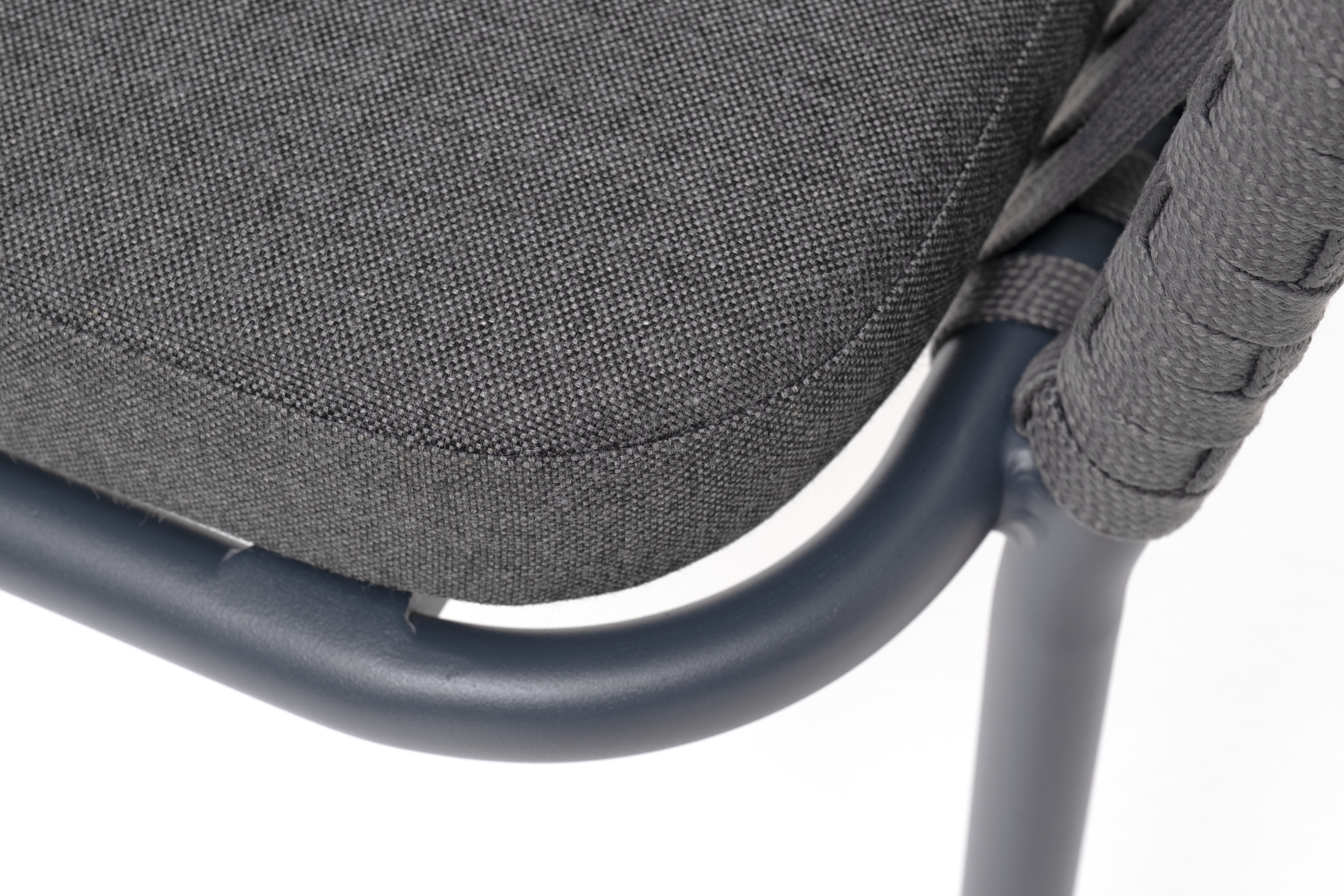 Стул «Бордо» изготовлен из алюминиевого каркаса, окрашенного порошковой износостойкой краской в темно-серый (RAL7024) цвет.