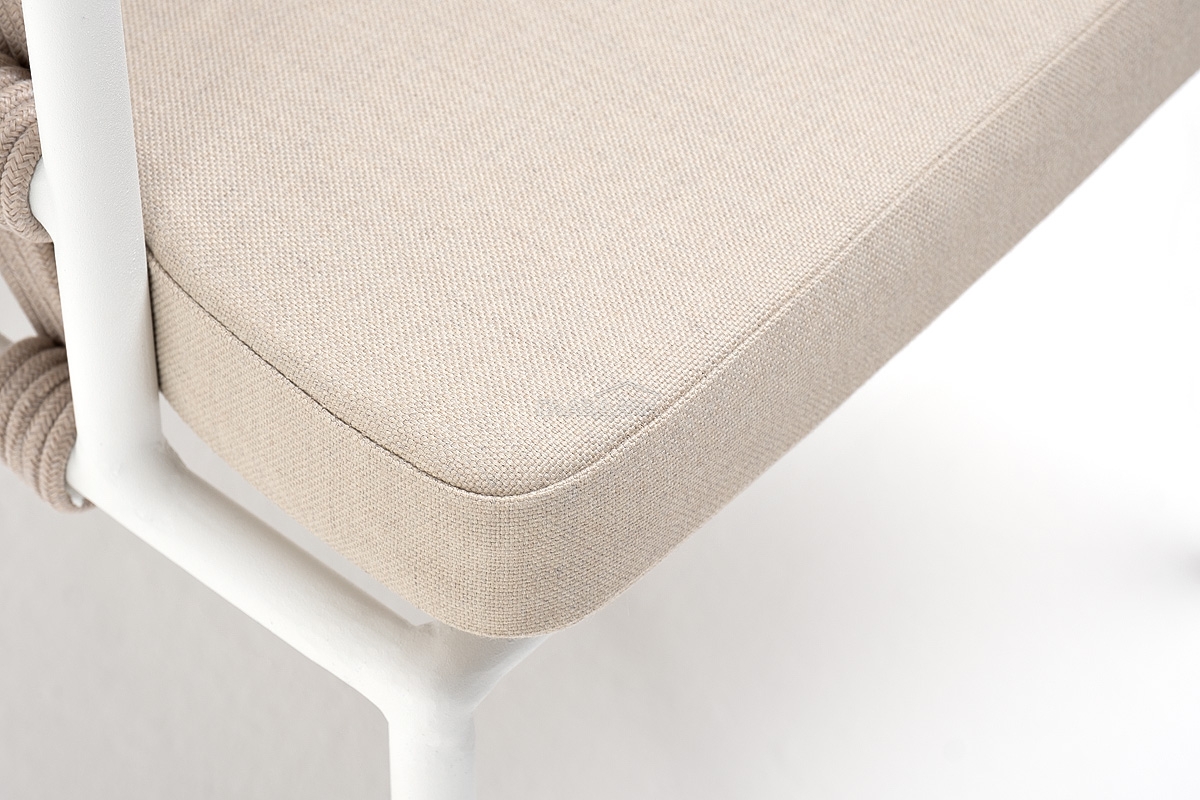 Каркас вручную оплетен бежевым роупом - эластичными синтетическими лентами из высокопрочных полиэфирных волокон.
