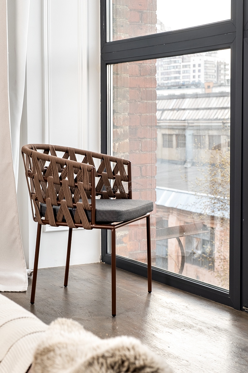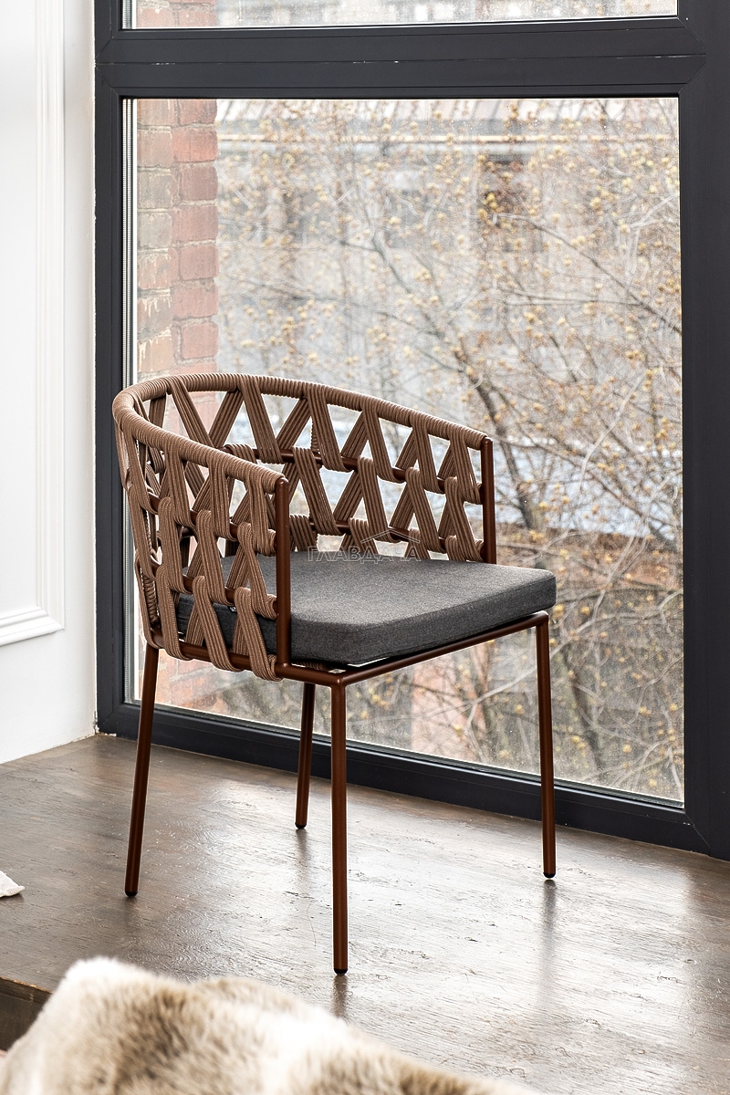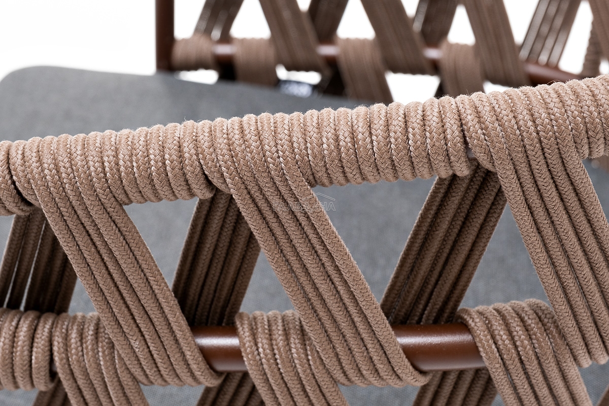 Каркас вручную оплетен коричневым (RAL8016) роупом - эластичными синтетическими лентами из высокопрочных полиэфирных волокон.