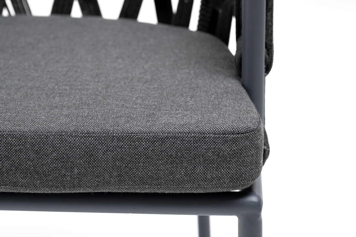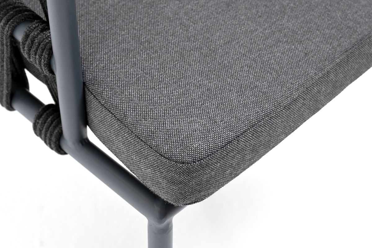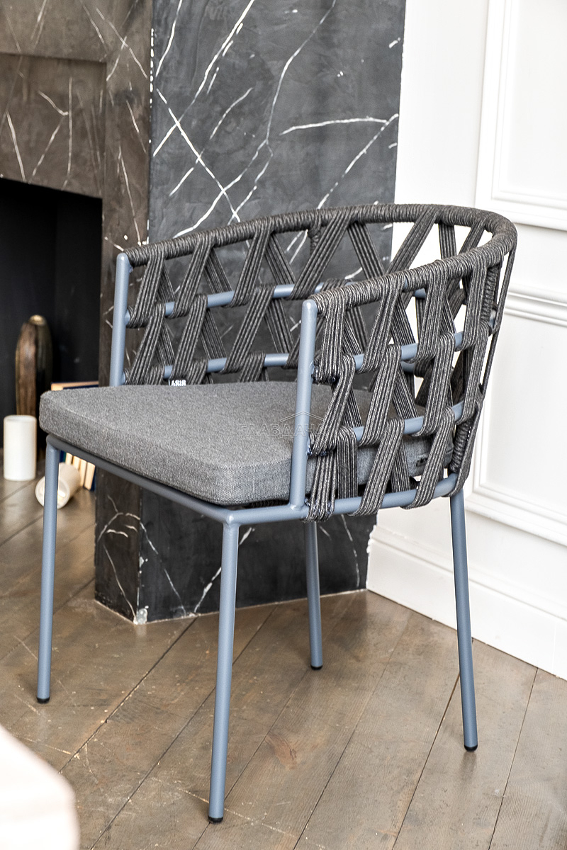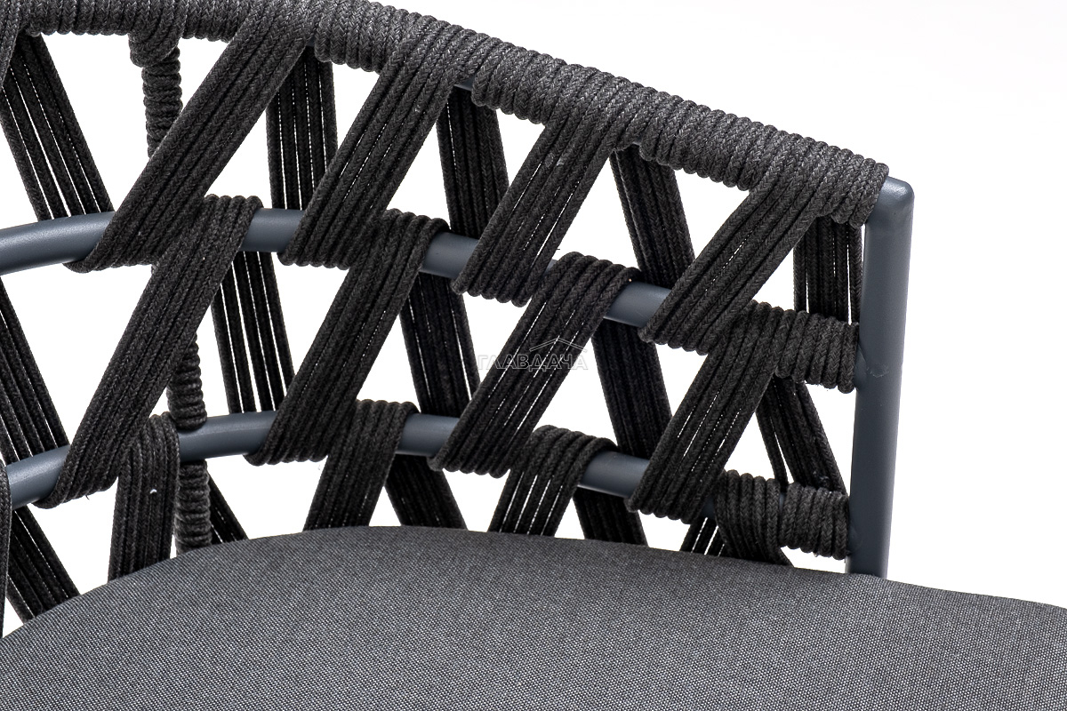 Каркас вручную оплетен темно-серым роупом - эластичными синтетическими лентами из высокопрочных полиэфирных волокон.