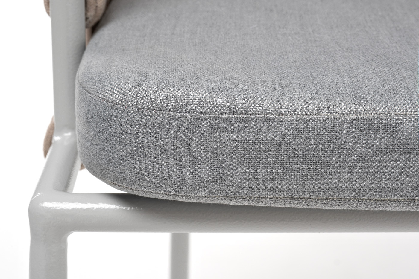 В комплект входит подушка со съёмным чехлом из 100% влагоотталкивающего полиэстера светло-серого цвета.
