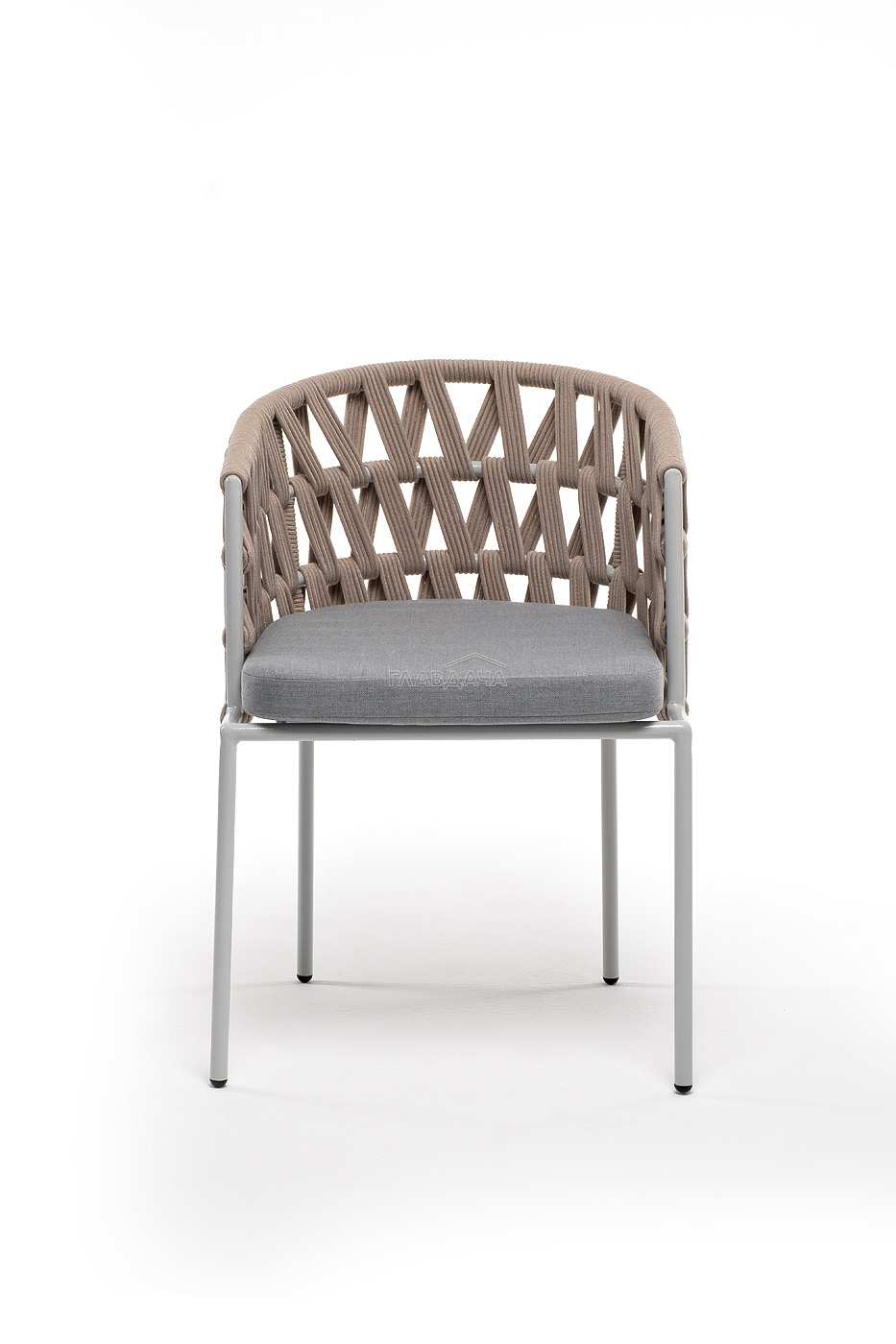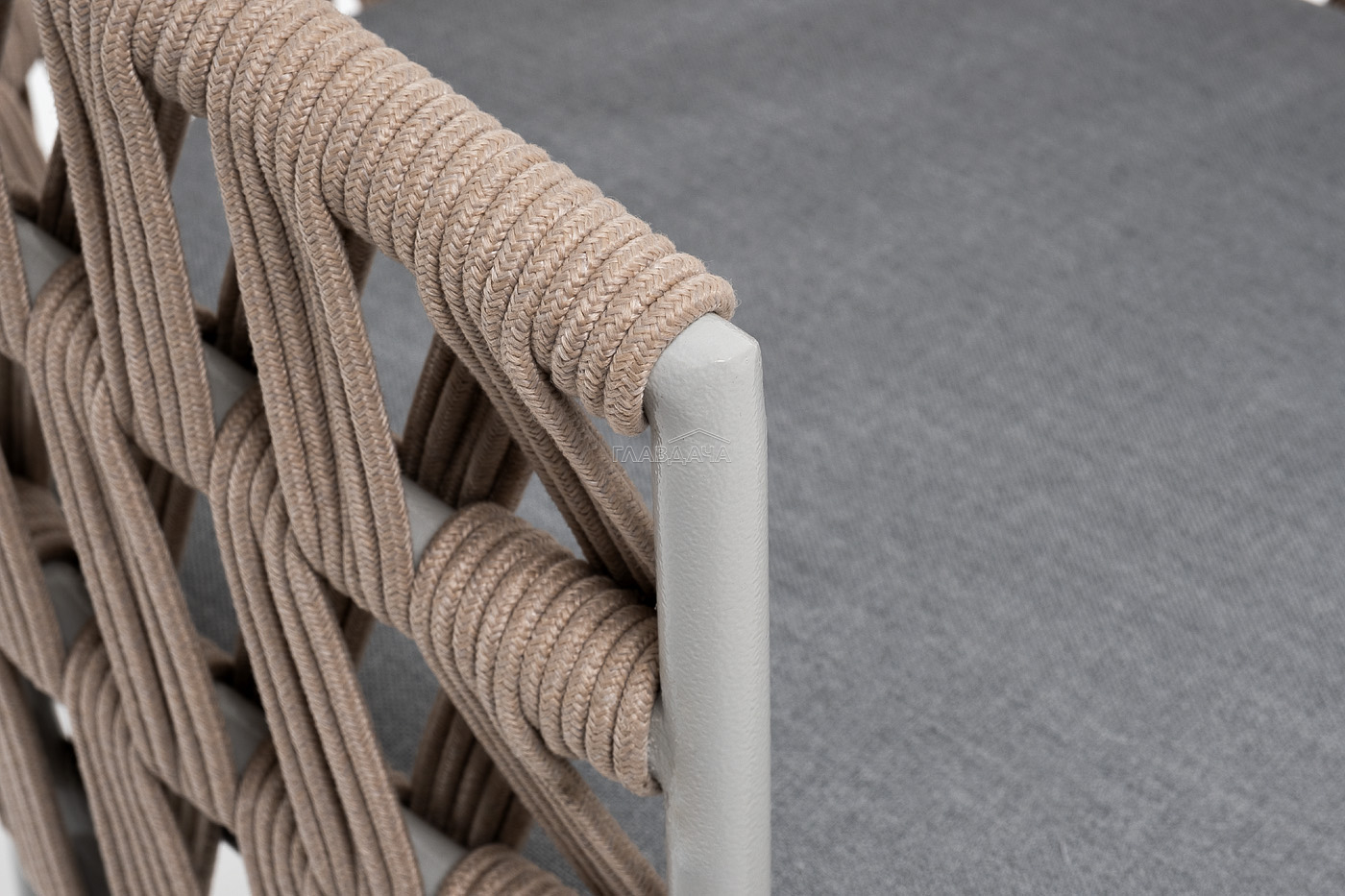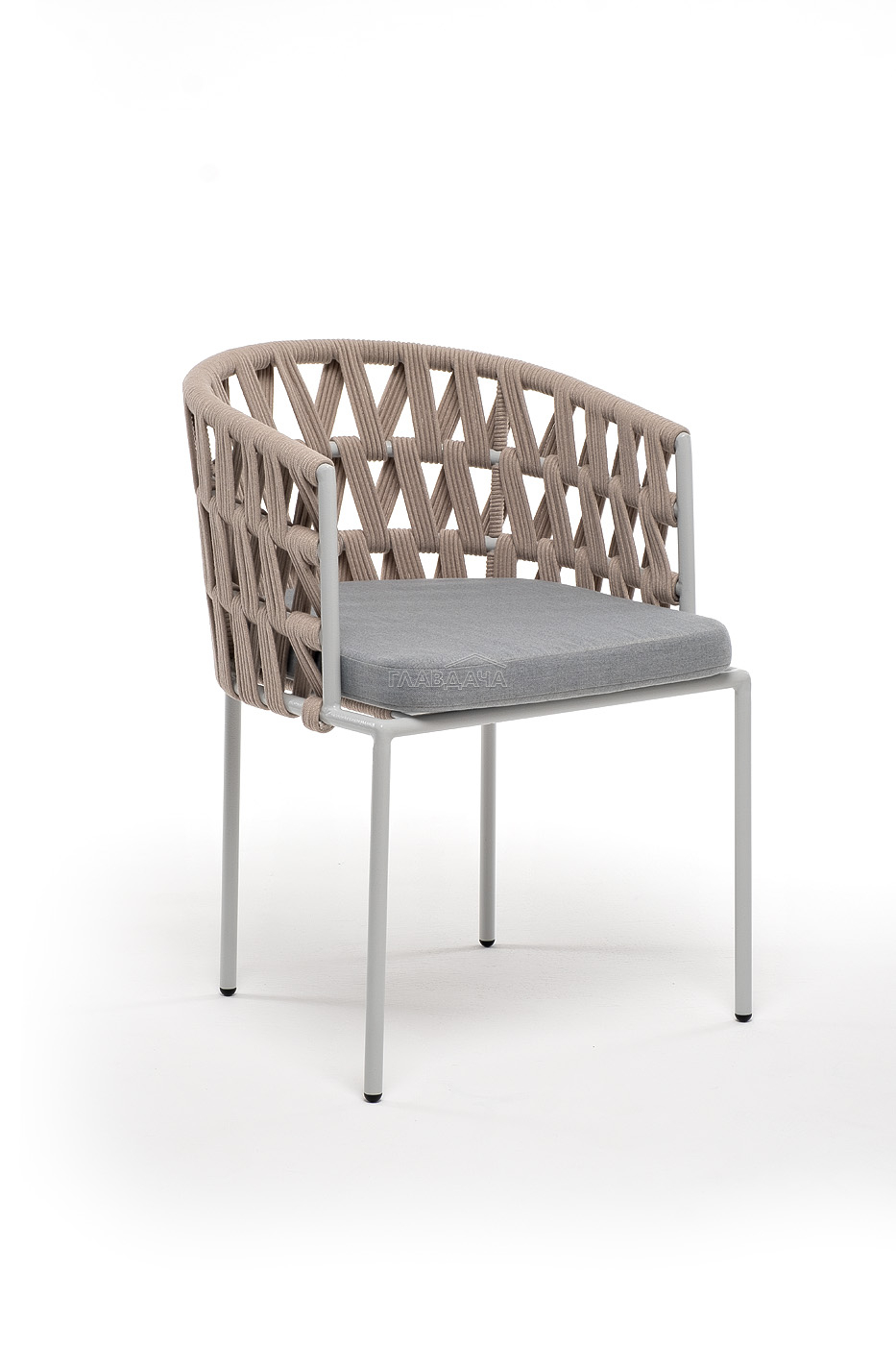 Каркас вручную оплетен бежевым роупом - эластичными синтетическими лентами из высокопрочных полиэфирных волокон.