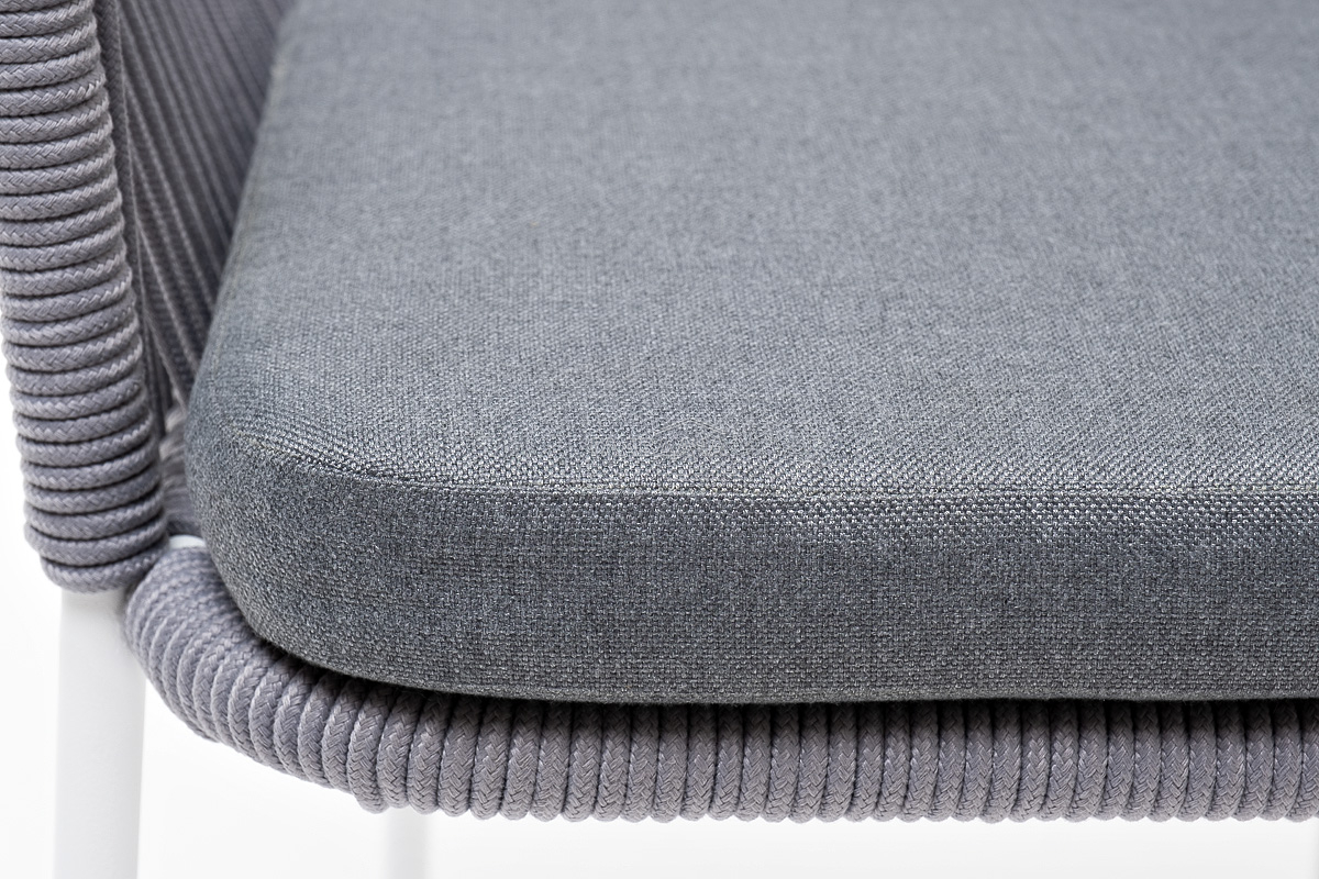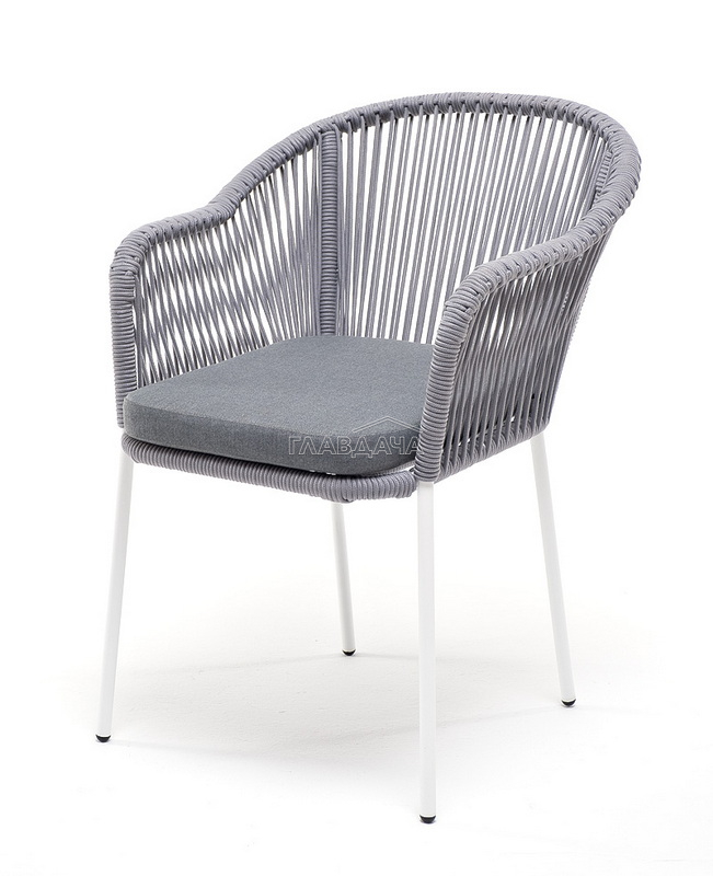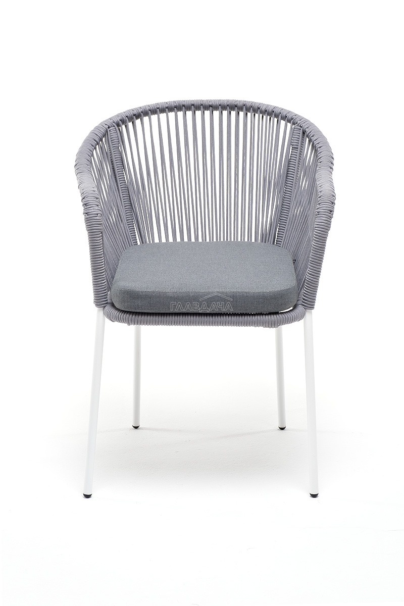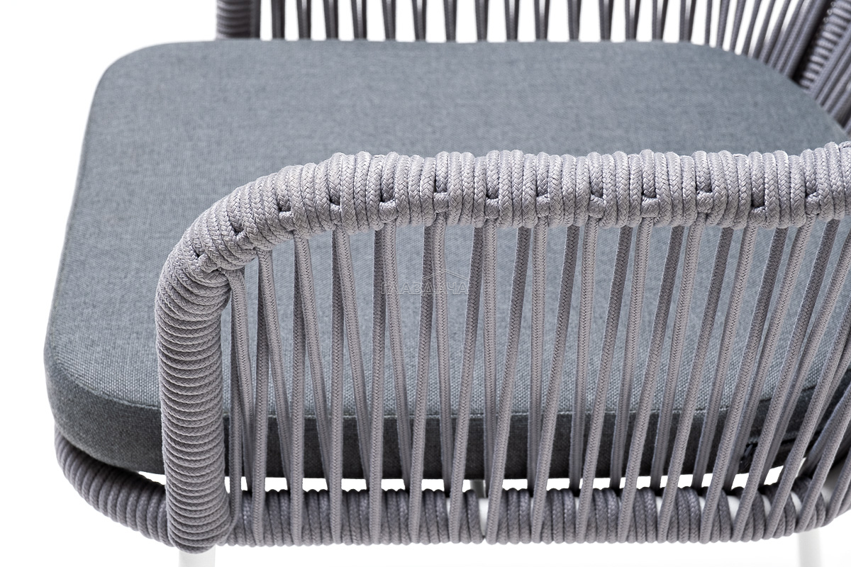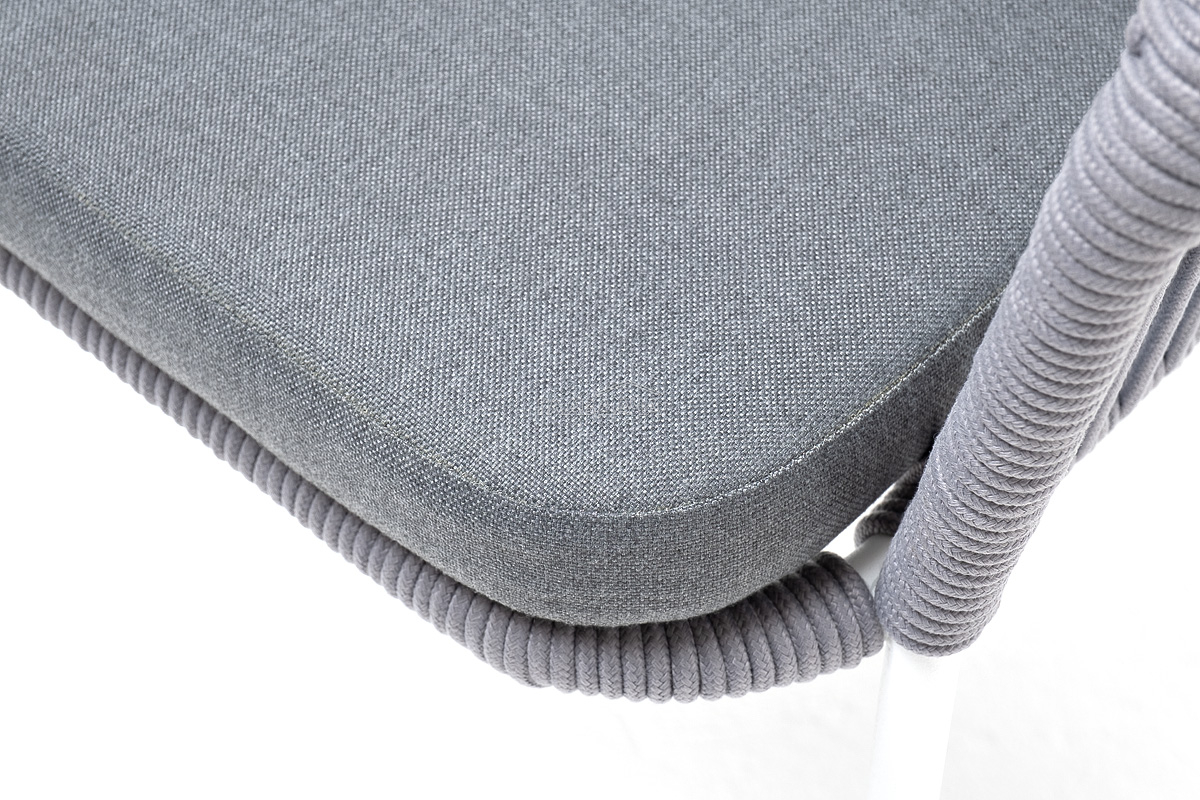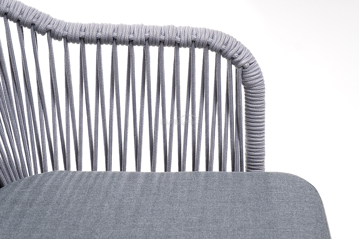 Подушка в комплекте со стулом выполнена из полиэстера 100% плотностью 300гр/м2 с влагоотталкивающей пропиткой светло-серого цвета. Это надежный и прочный материал, который легко очищается и устойчив к неблагоприятным погодным условиям.