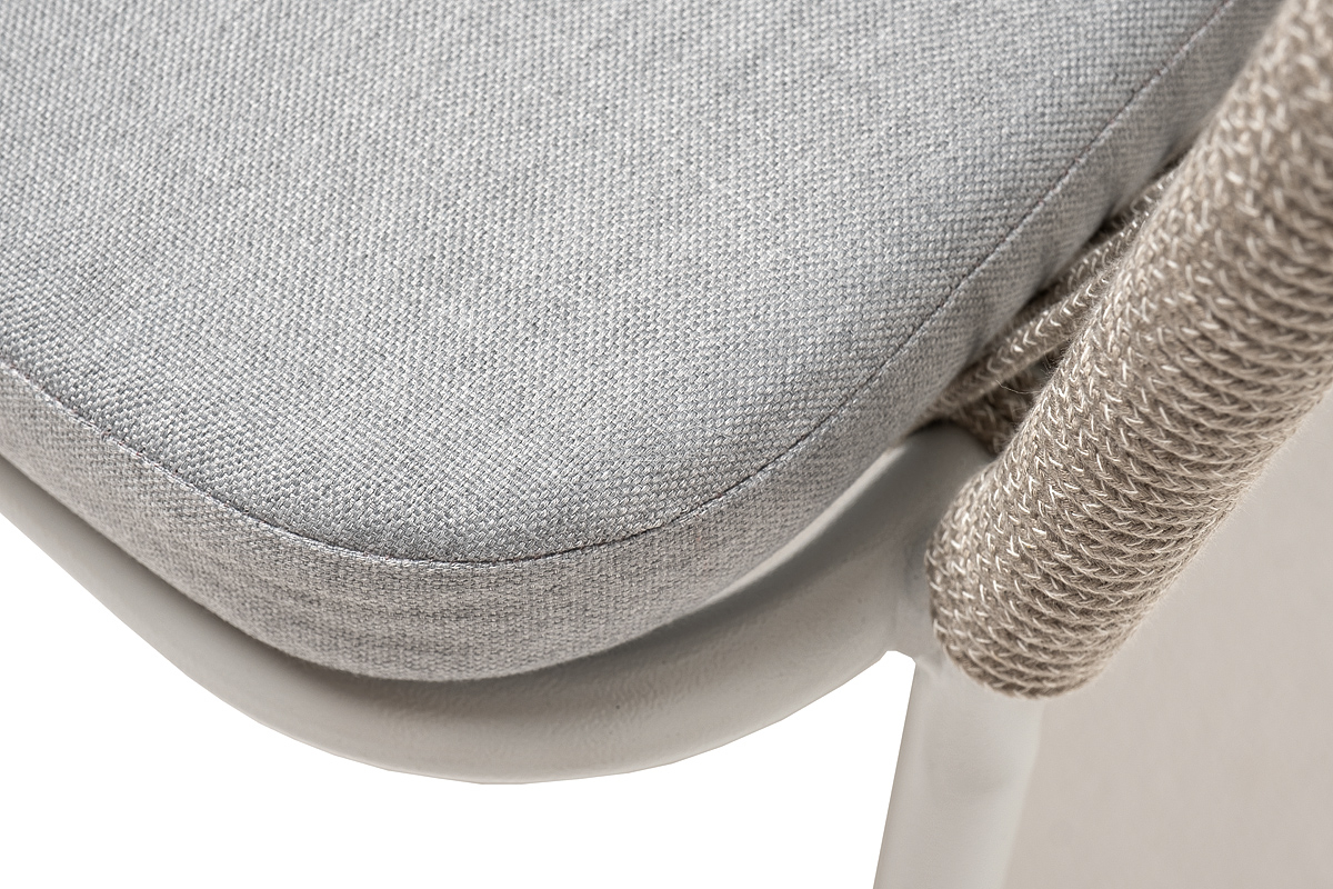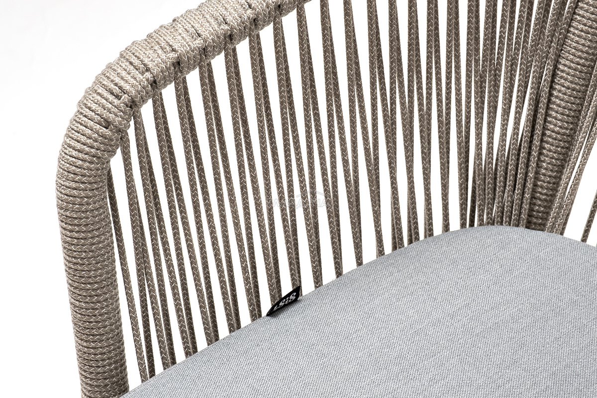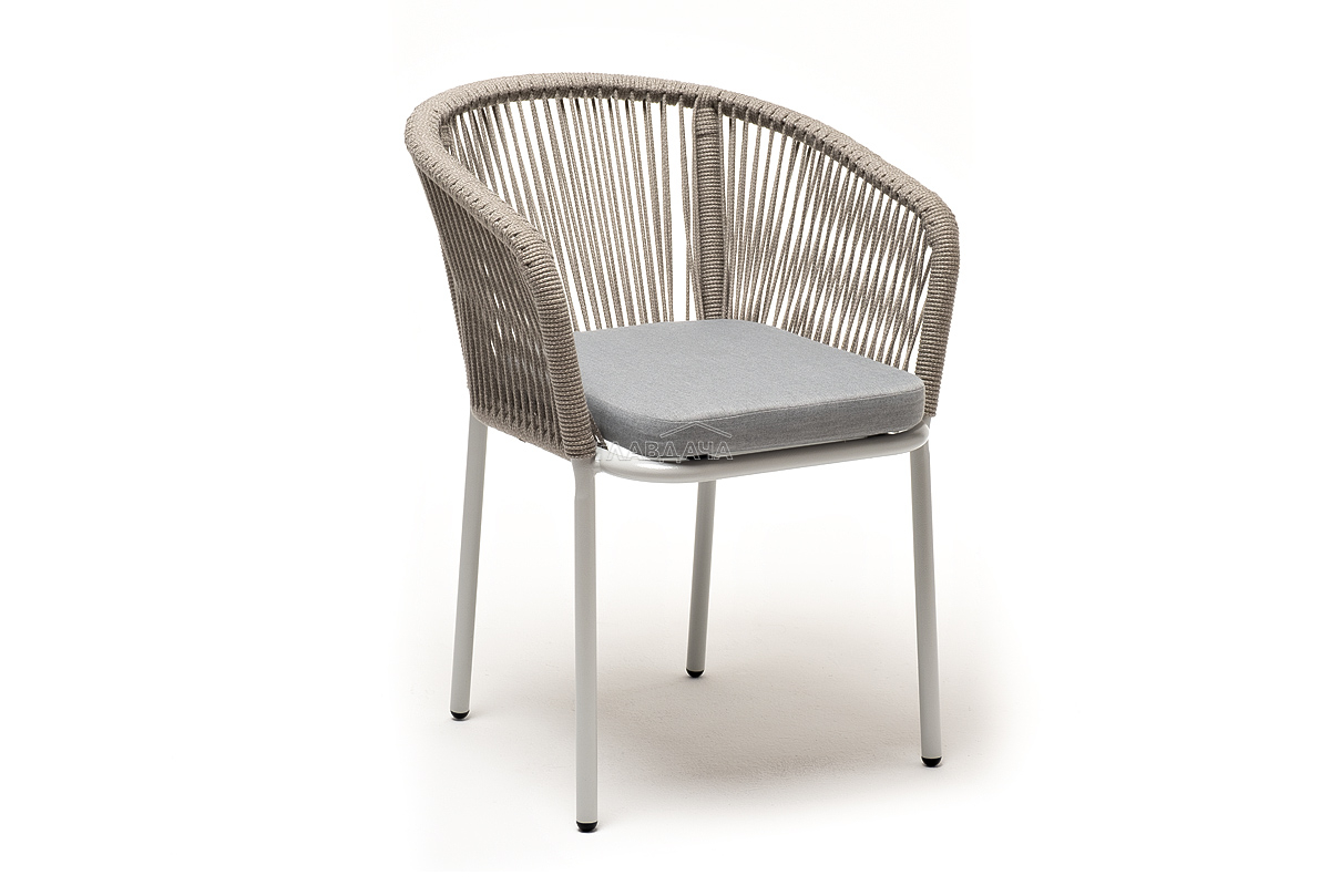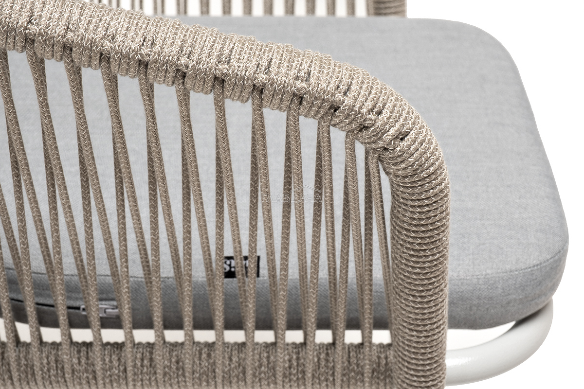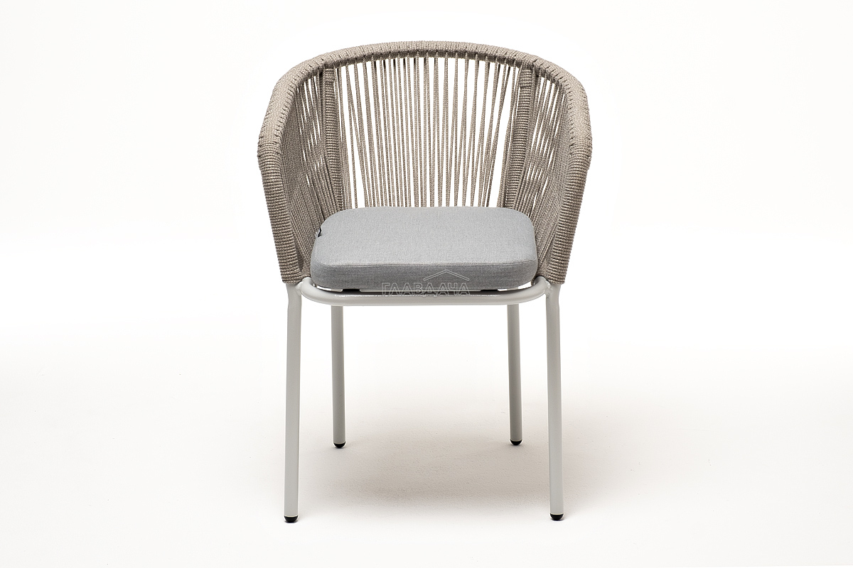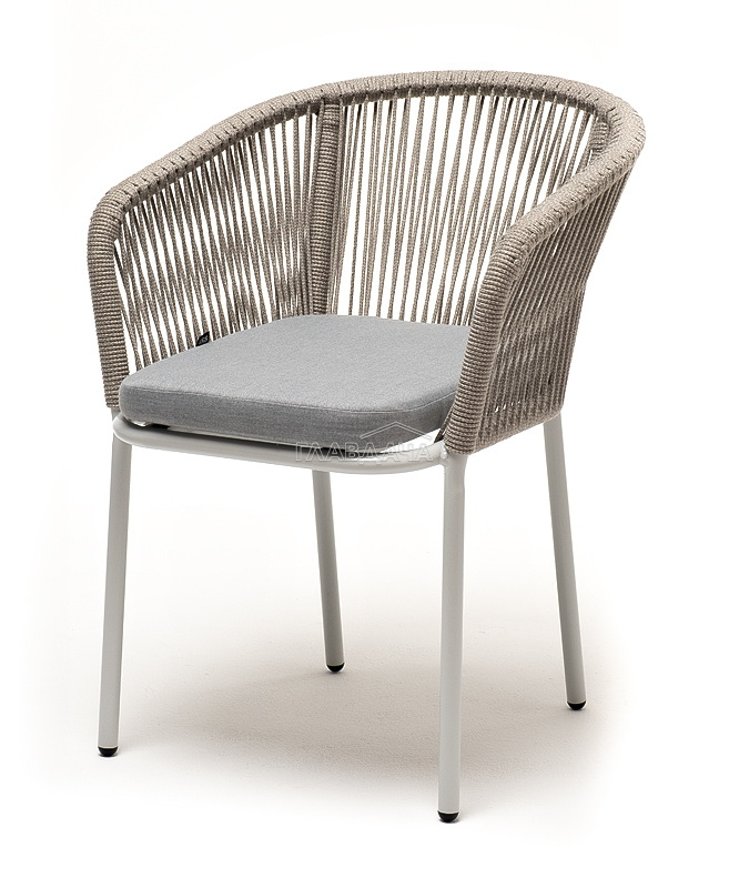 Выполнен из алюминиевого каркаса, окрашенного в светло-серый (RAL7035) цвет. Оплетка - современный материал «роуп», которым каркас оплетался вручную.