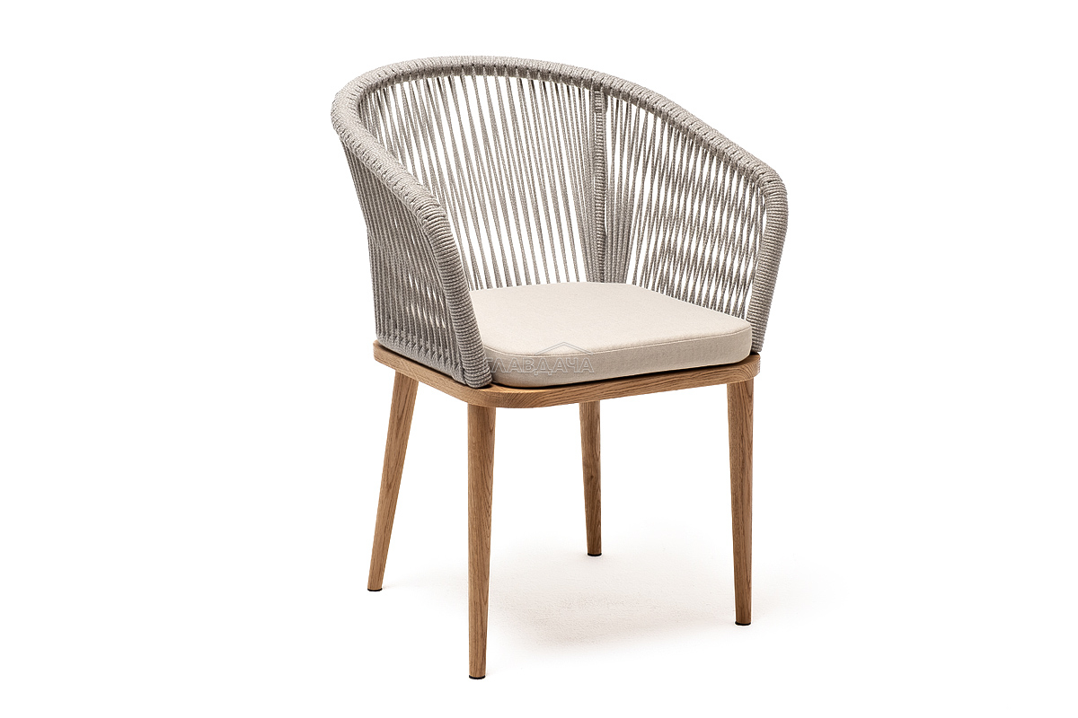 Плетеный стул «Марсель» представляет собой удобное и стильное решение для дома или сада. Изготовленный из прочного дубового каркаса и оплетки из роупа цвета серый меланж, этот стул является отличным выбором для долгосрочного использования.