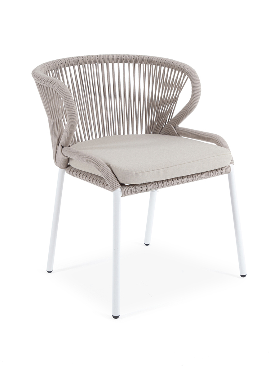 Изготовлен из алюминиевого каркаса, оплетенного вручную эластичными синтетическими лентами из высокопрочных полиэфирных волокон (роуп круглый). Цвет каркаса и оплетки - бежевый.