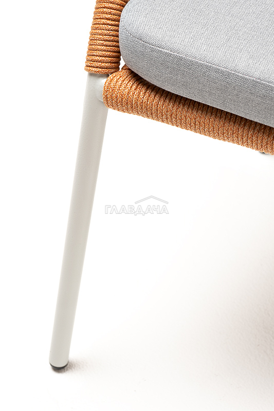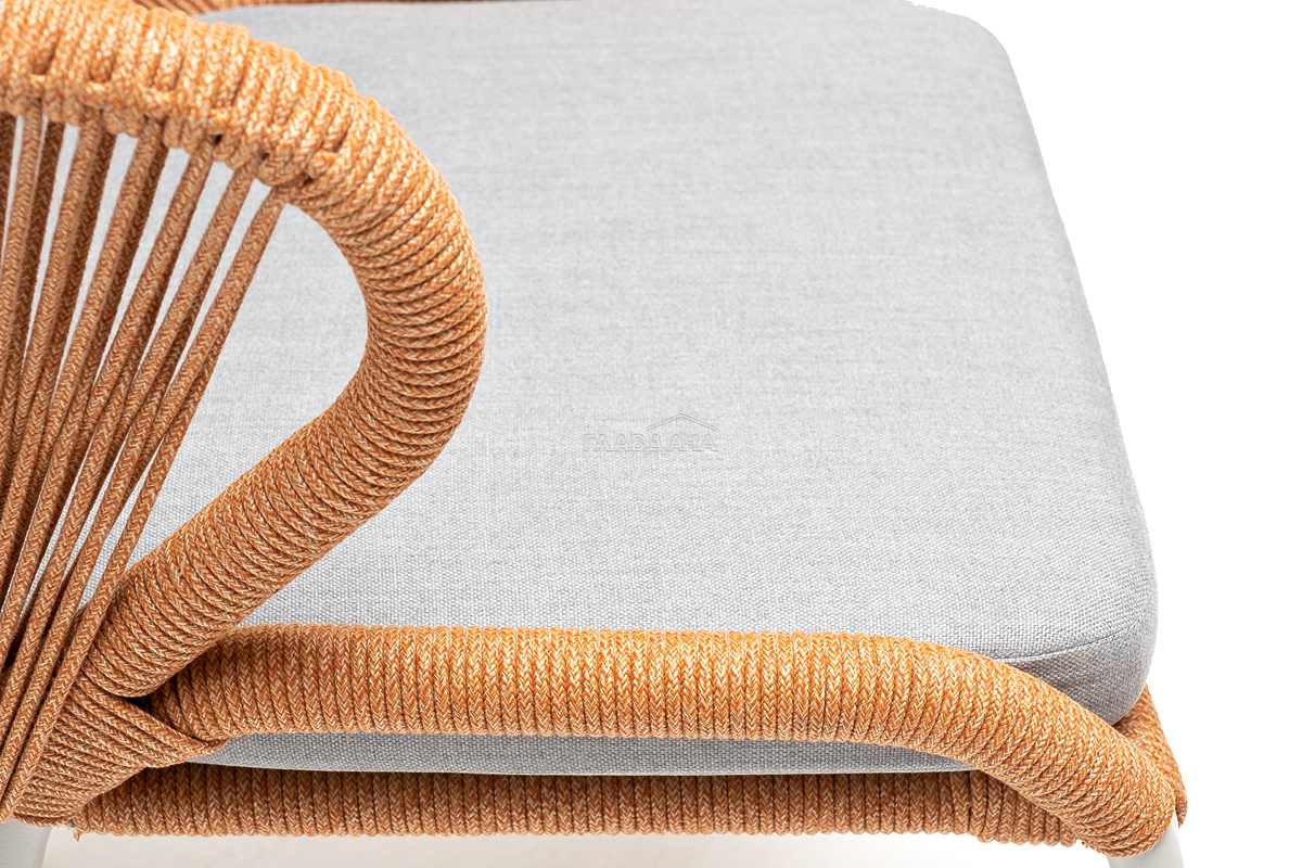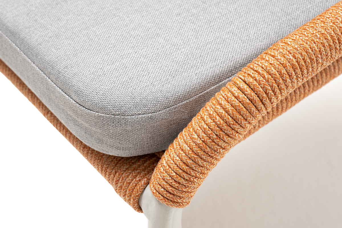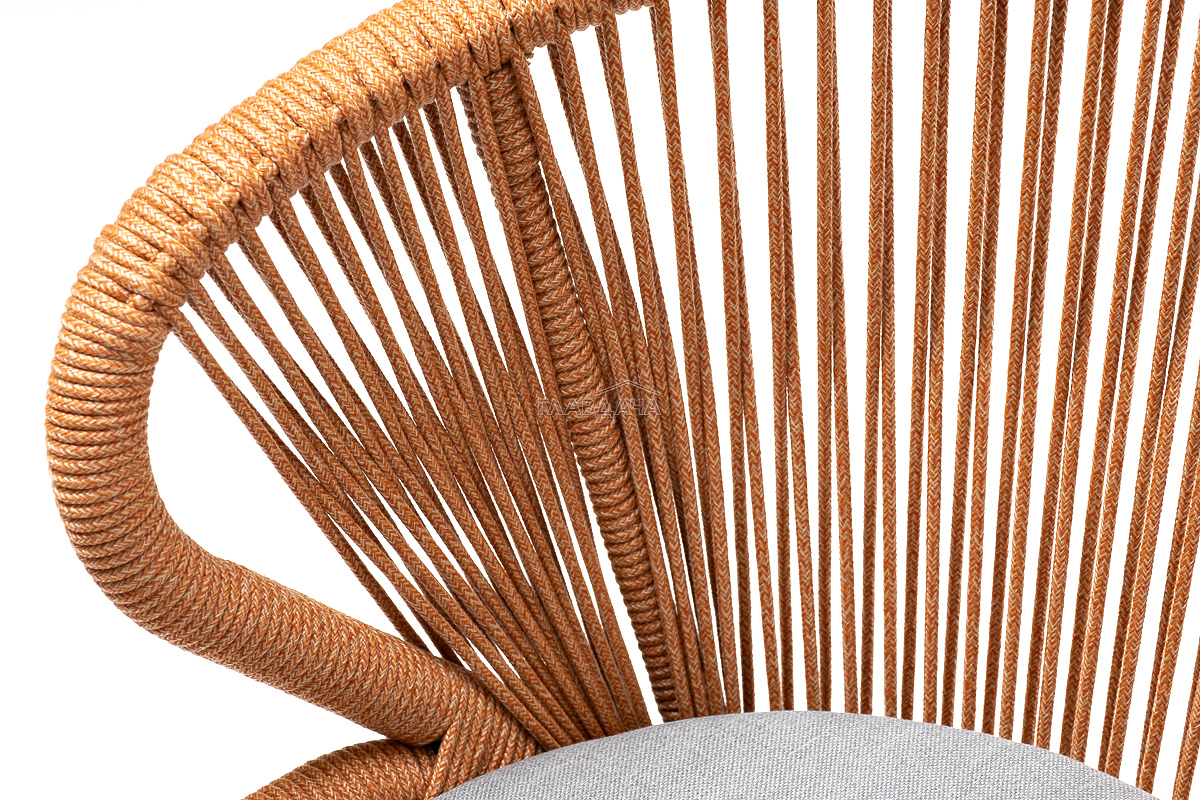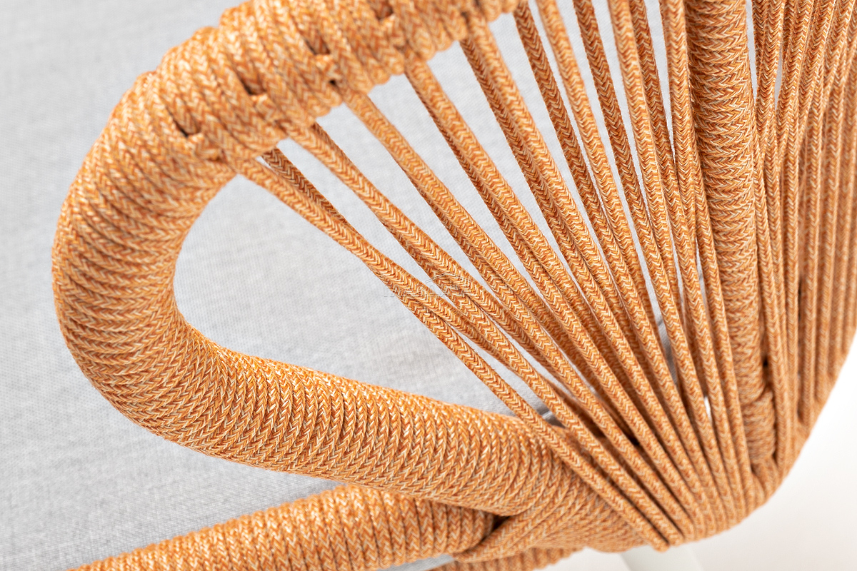 Изготовлен из алюминиевого каркаса, оплетенного вручную эластичными синтетическими лентами из высокопрочных полиэфирных волокон (роуп круглый). Цвет каркаса - светло-серый (RAL7035), оплетки - оранжевый меланж.