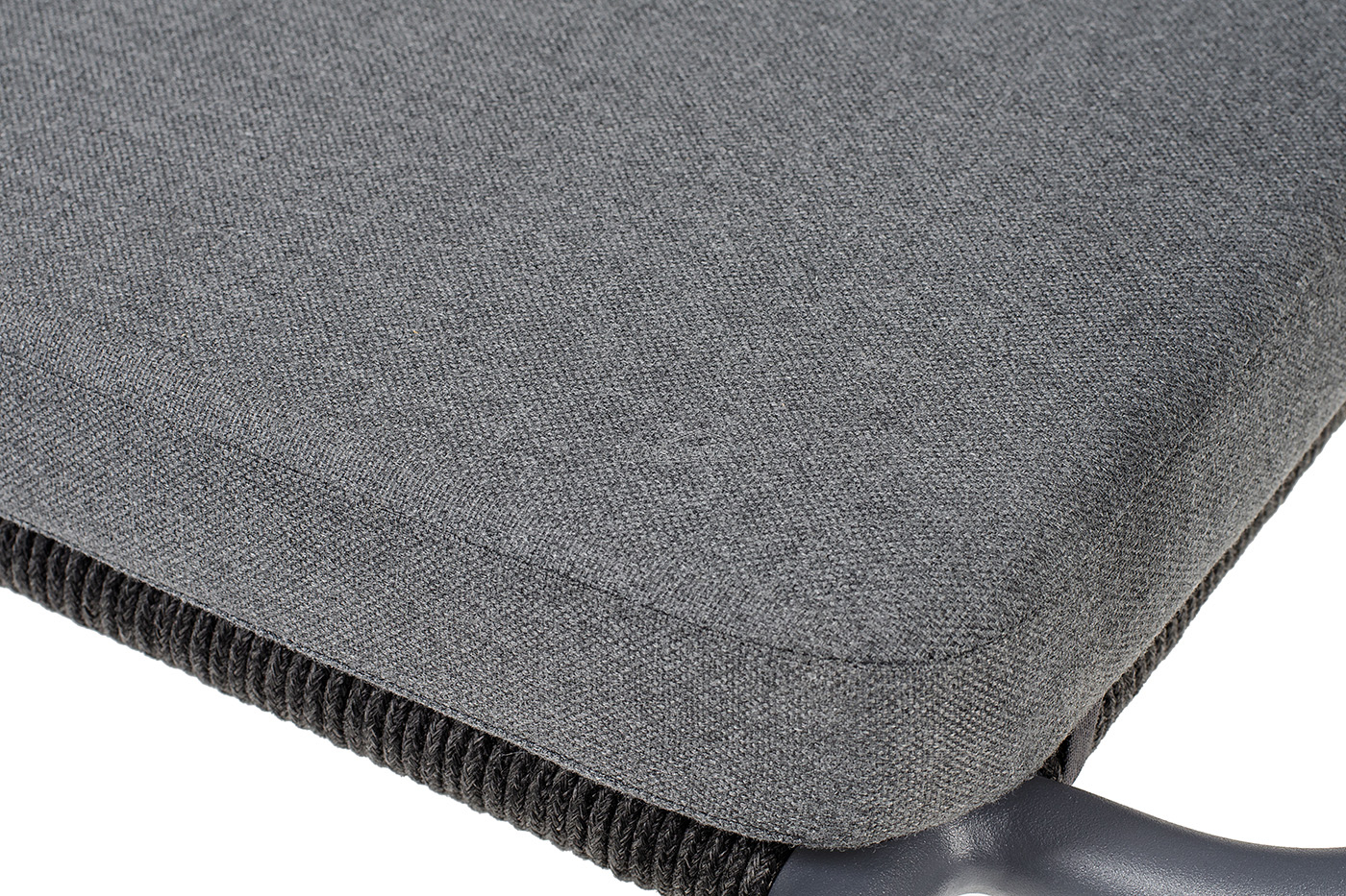 Выполнен из алюминиевого каркаса темно-серого (RAL7024) цвета. Оплетка - современный материал «роуп», которым каркас оплетался вручную.